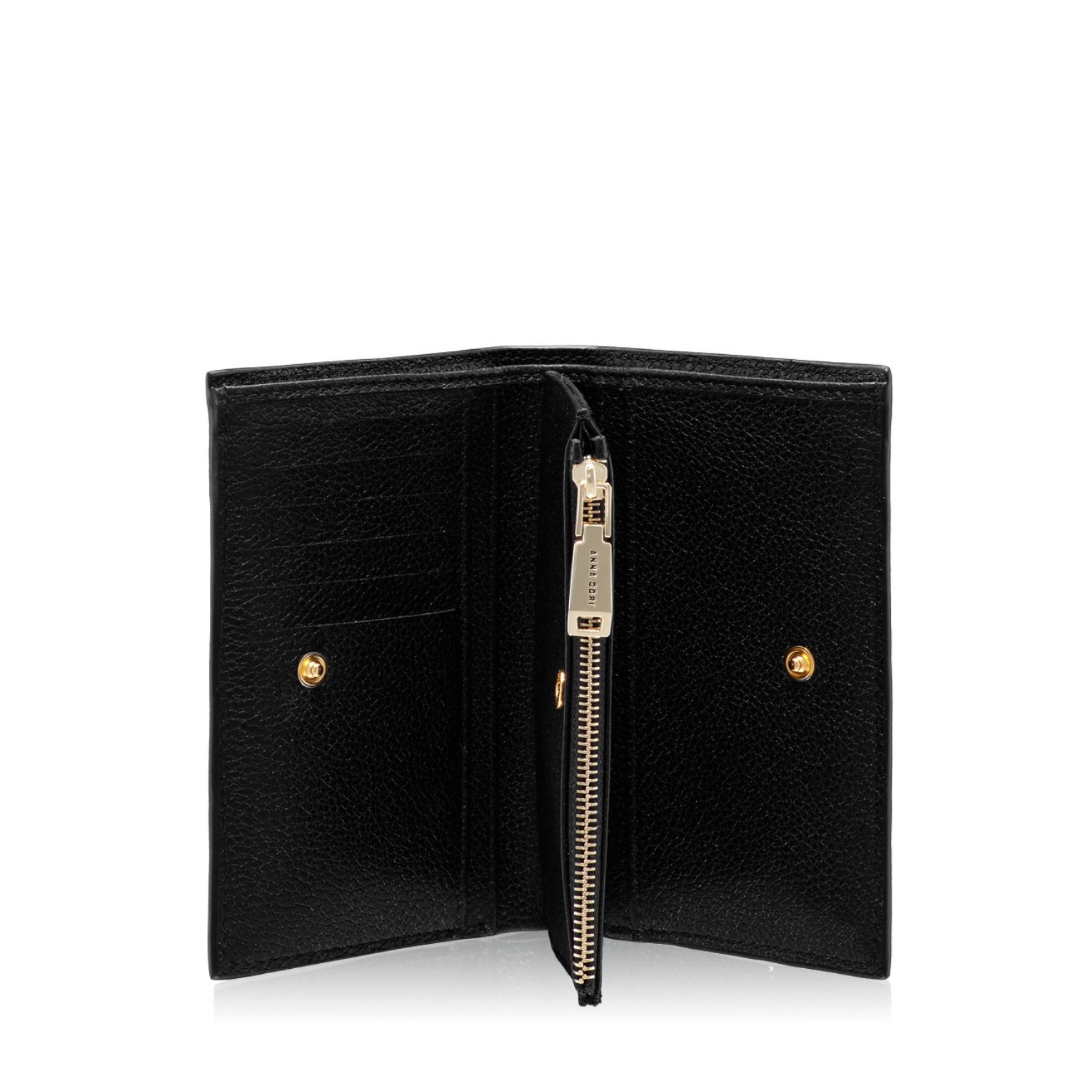 -natural leather-3 internal compartments-8 card holders-one interior zipper pocket-Anna Cori logo