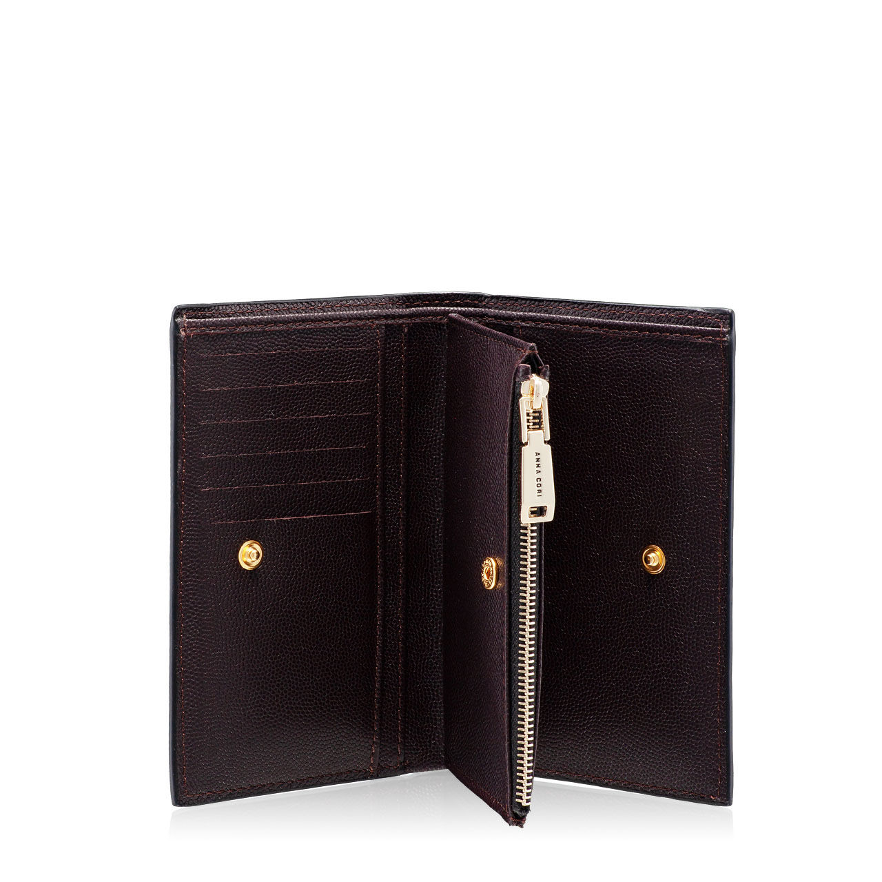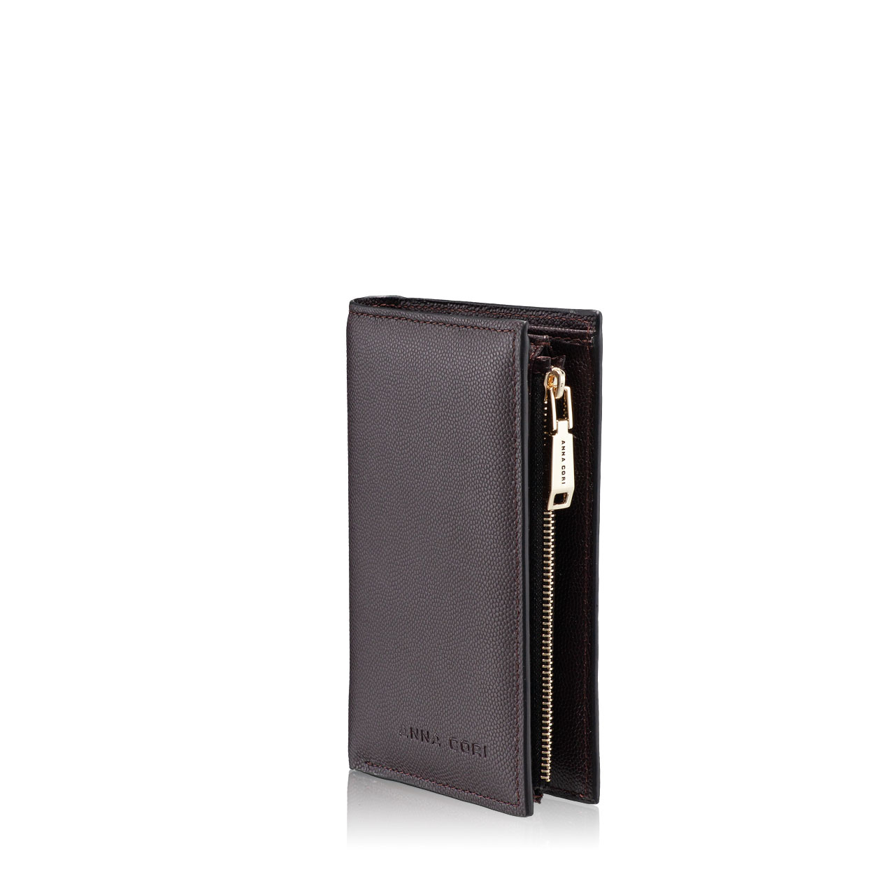 -natural leather-3 internal compartments-8 card holders-one interior zipper pocket-Anna Cori logo