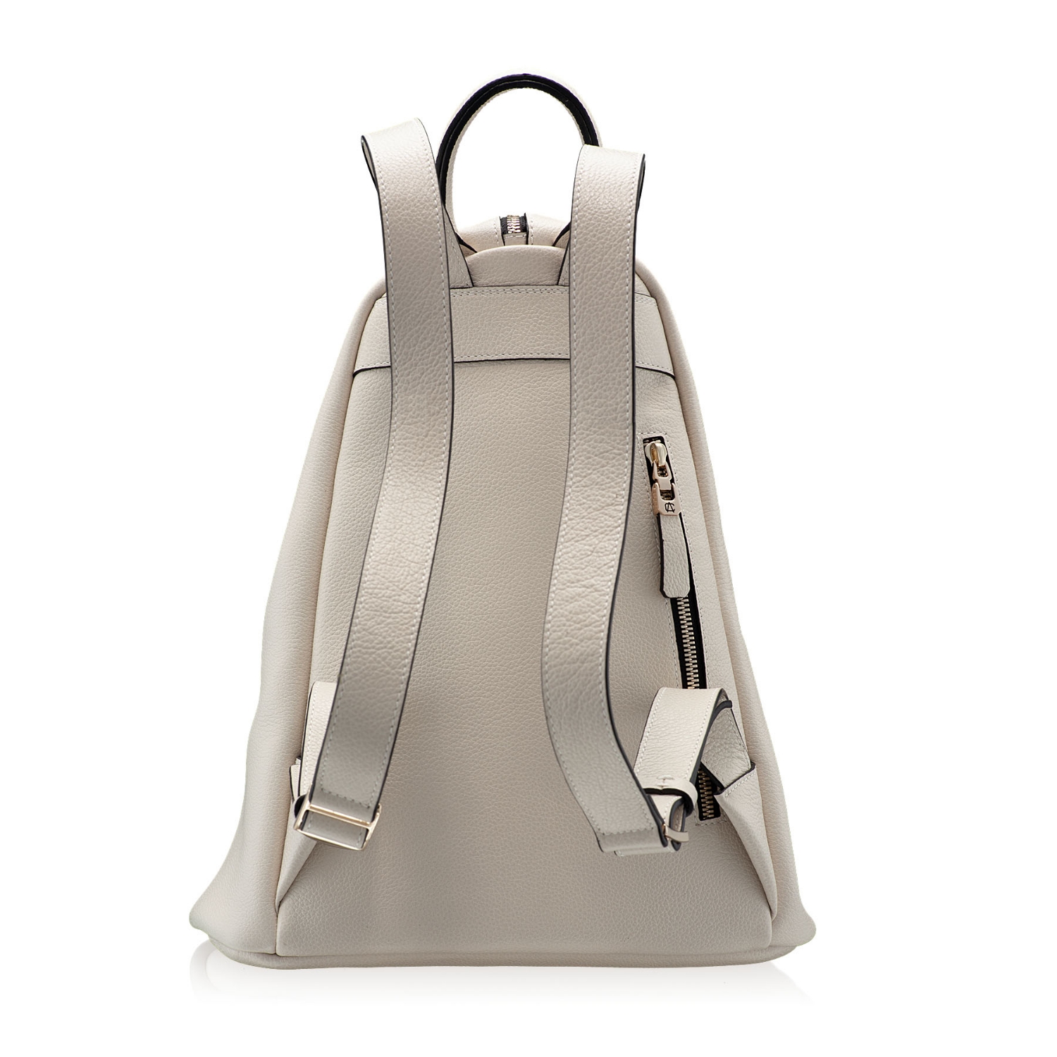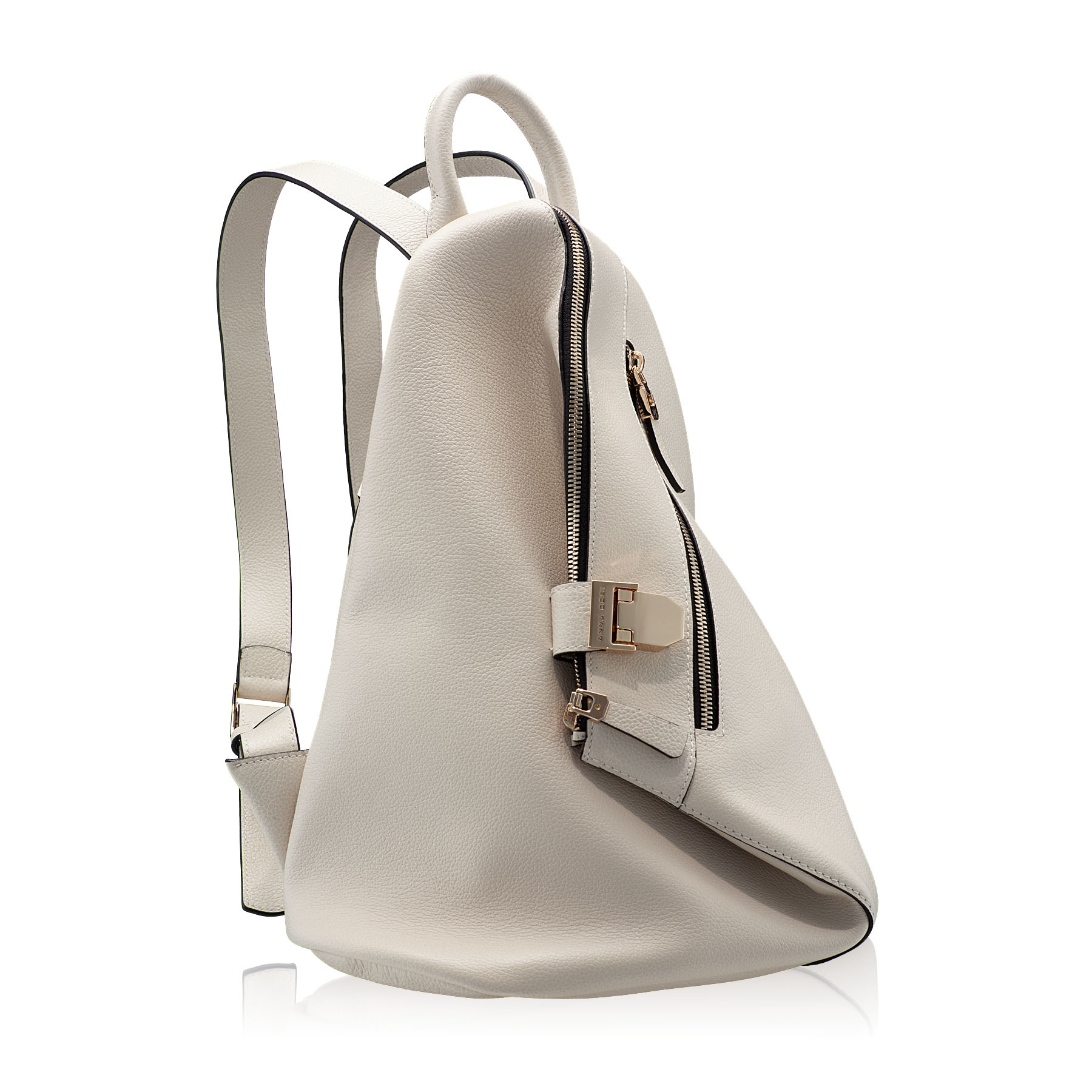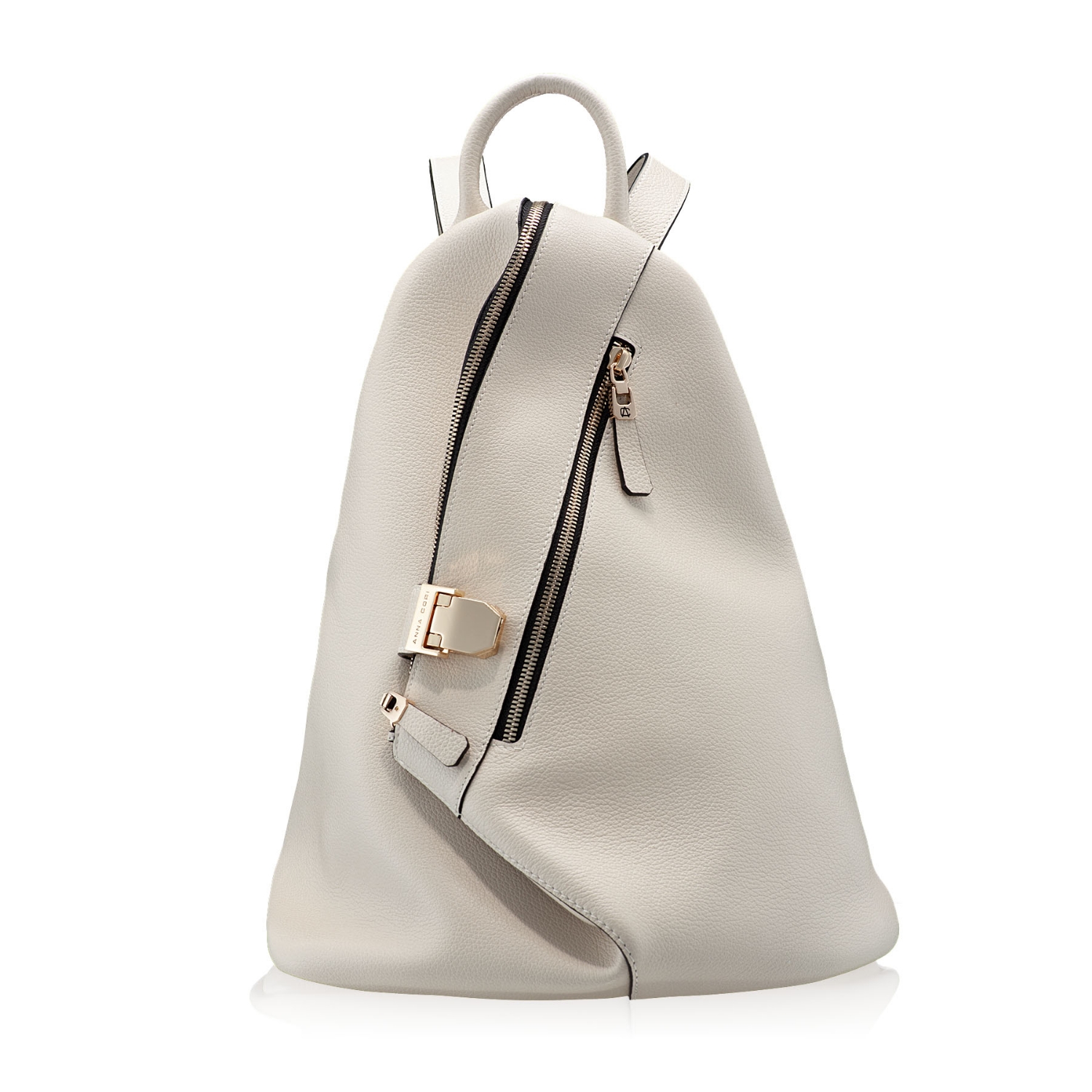 #IRIS is a timeless calf leather backpack in a timeless shape. The front pockets, the closure mode and the personalized metal buckle make this backpack a unique and special model.