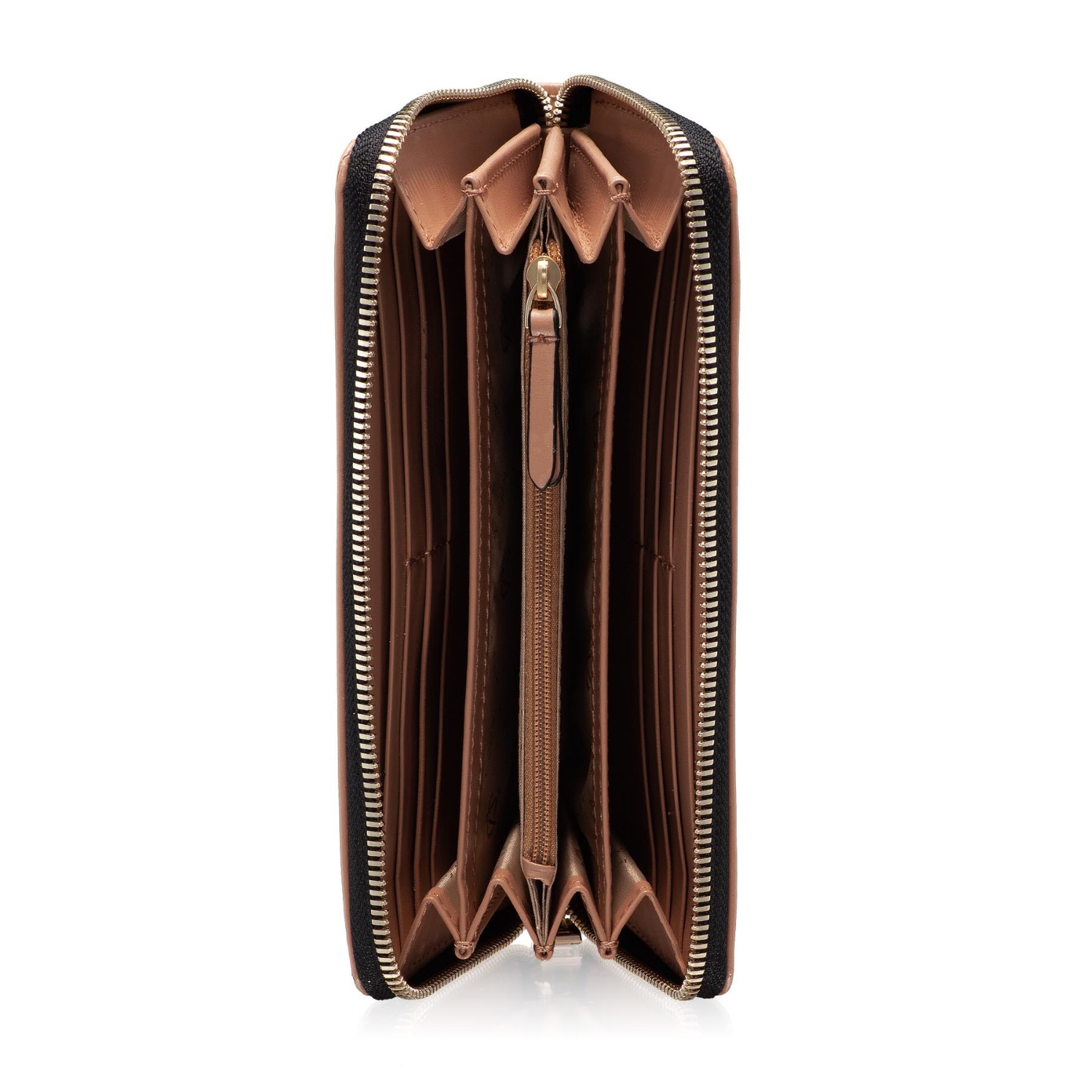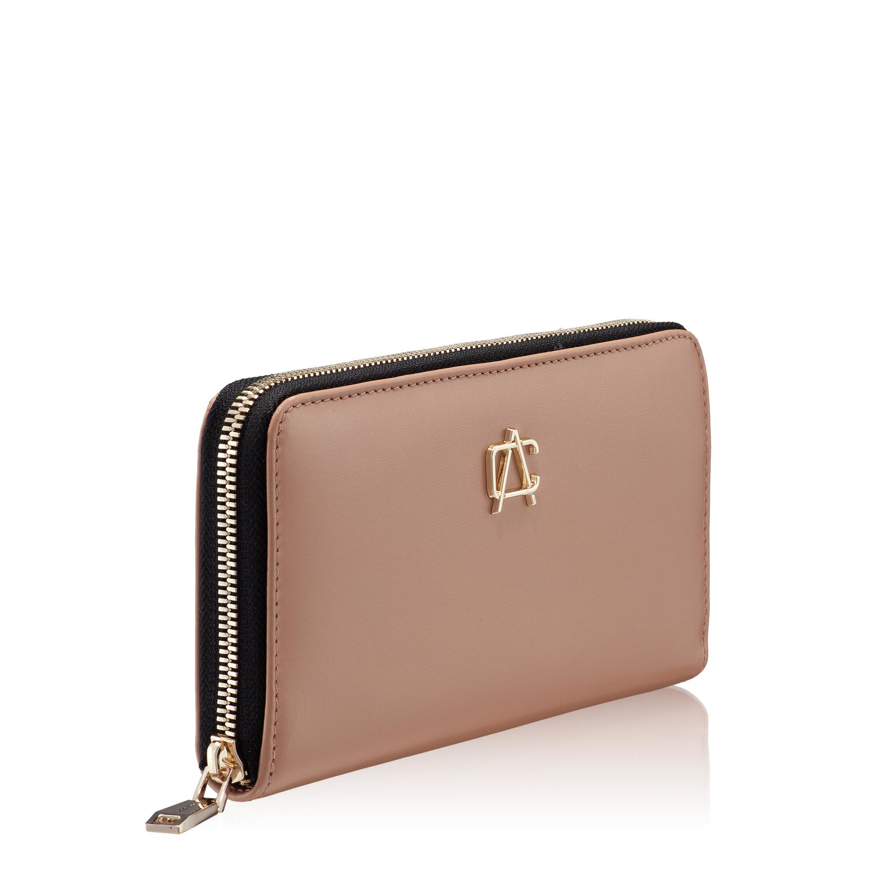-natural leather-4 internal compartments-8 card holders-one internal zipper pocket-zipper closure-personalized with Anna Cori monogram