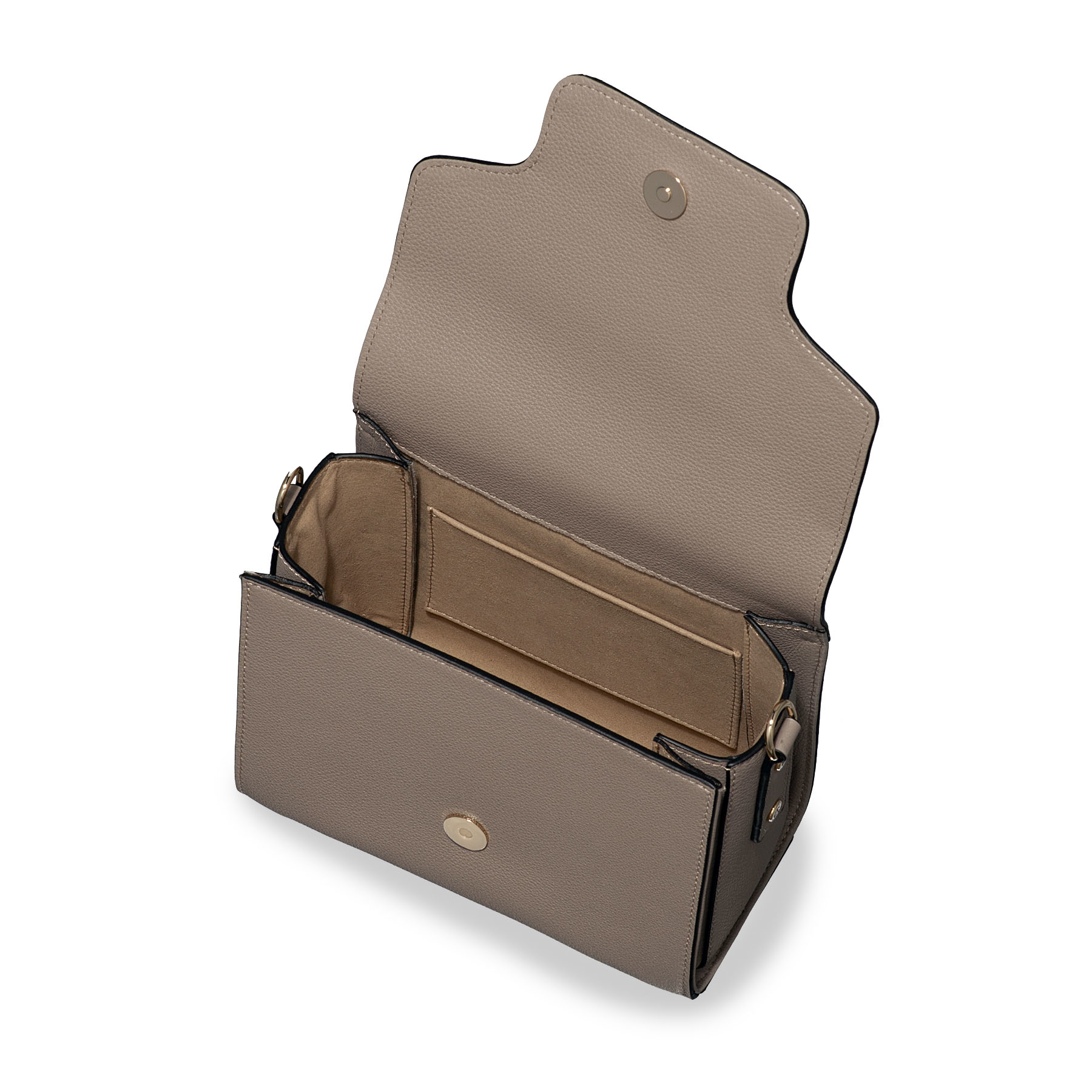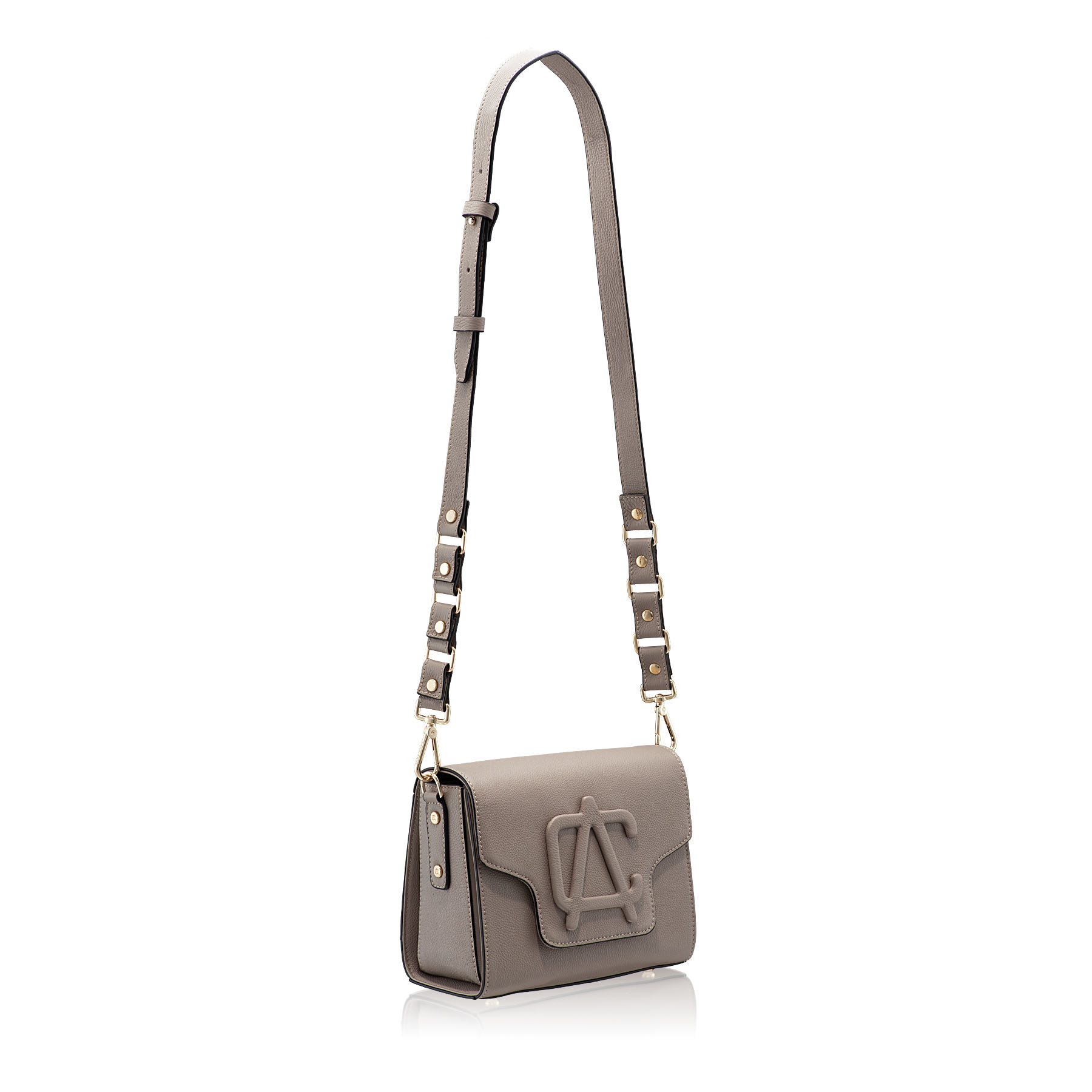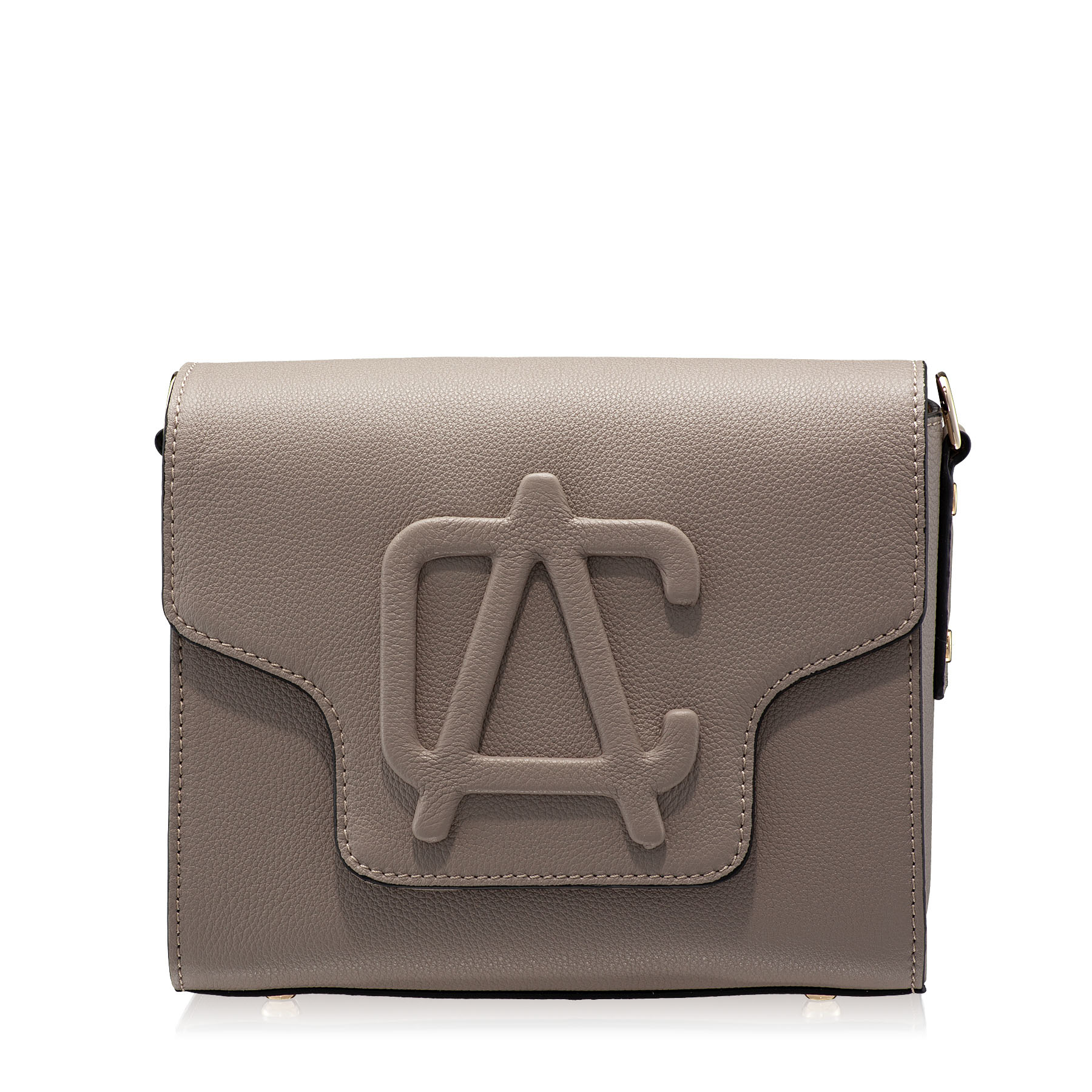 A modern yet timeless choice, the EDINA bag is crafted from fine-textured natural calf leather, accessorized with the Anna Cori monogram in a new shape, wrapped in leather. Small in size but very roomy and with an adjustable shoulder strap, this model is a perfect choice.