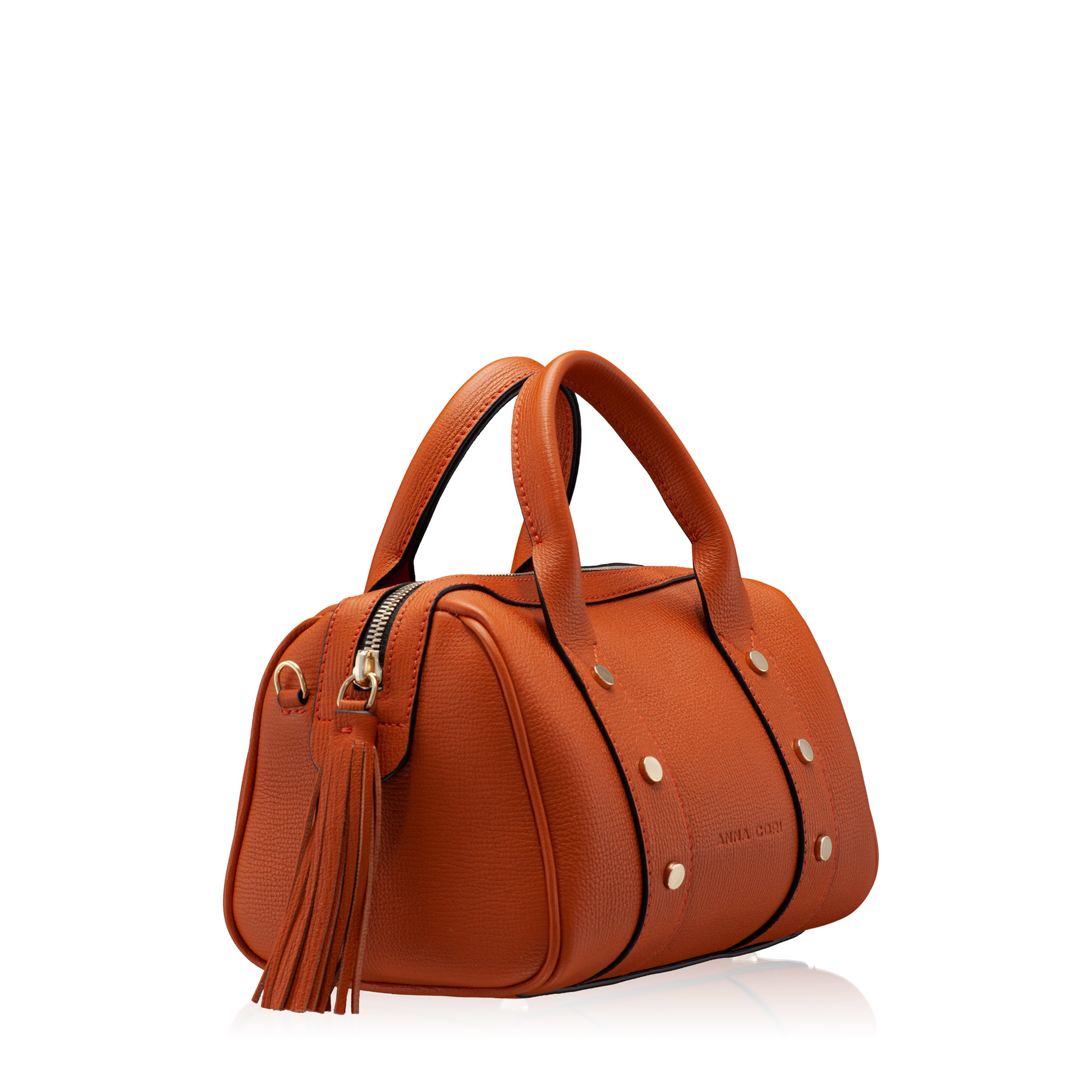 The #PERRY genuine leather bag presents a retro #bauletto style with its special shape. It is accessorized with gold metal staple, genuine leather zipper pulls and a gold metal shoulder chain with genuine leather. It contains one main compartment and two pockets and can be carried by hand or over the shoulder.