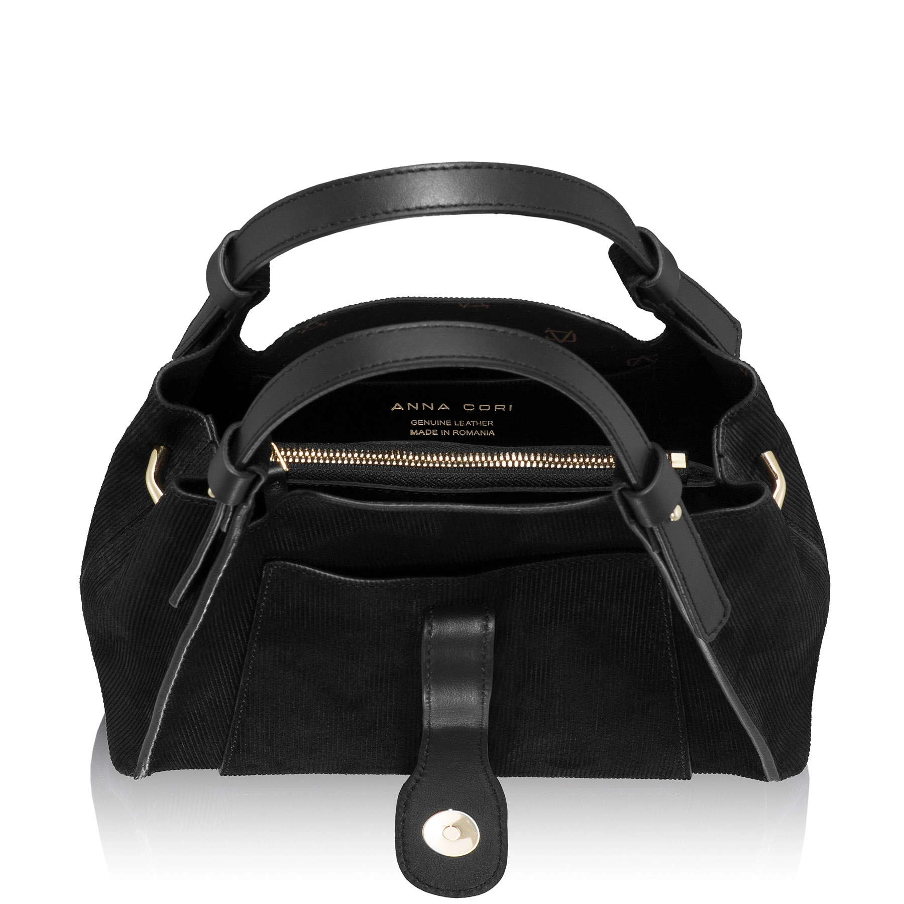Made of genuine leather + suede with ribbed texture, this bag impresses with its texture and sophisticated design.