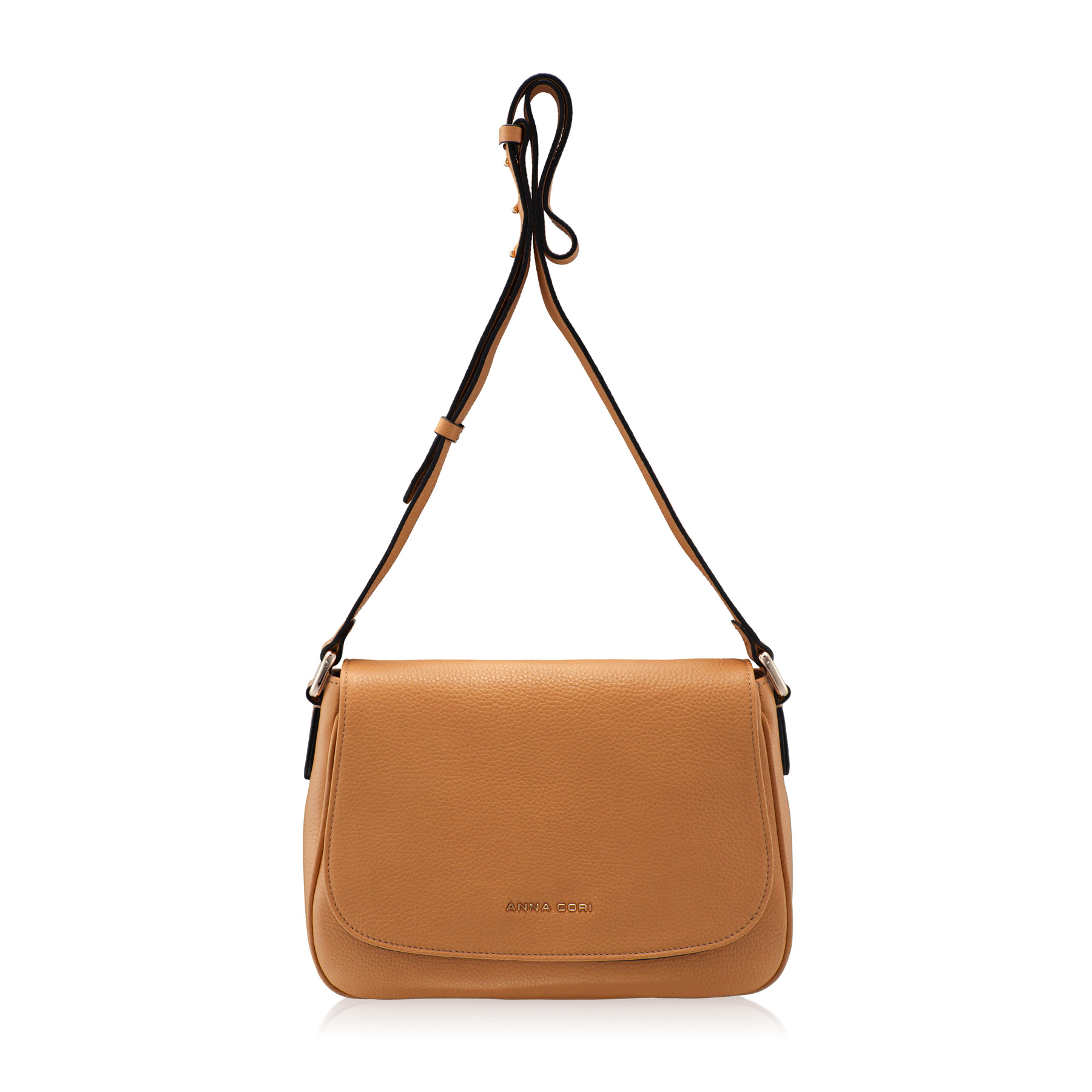 -natural leather-fabric lining-two compartments-one interior zipper pocket-one exterior zipper pocket-magnetic snap closure