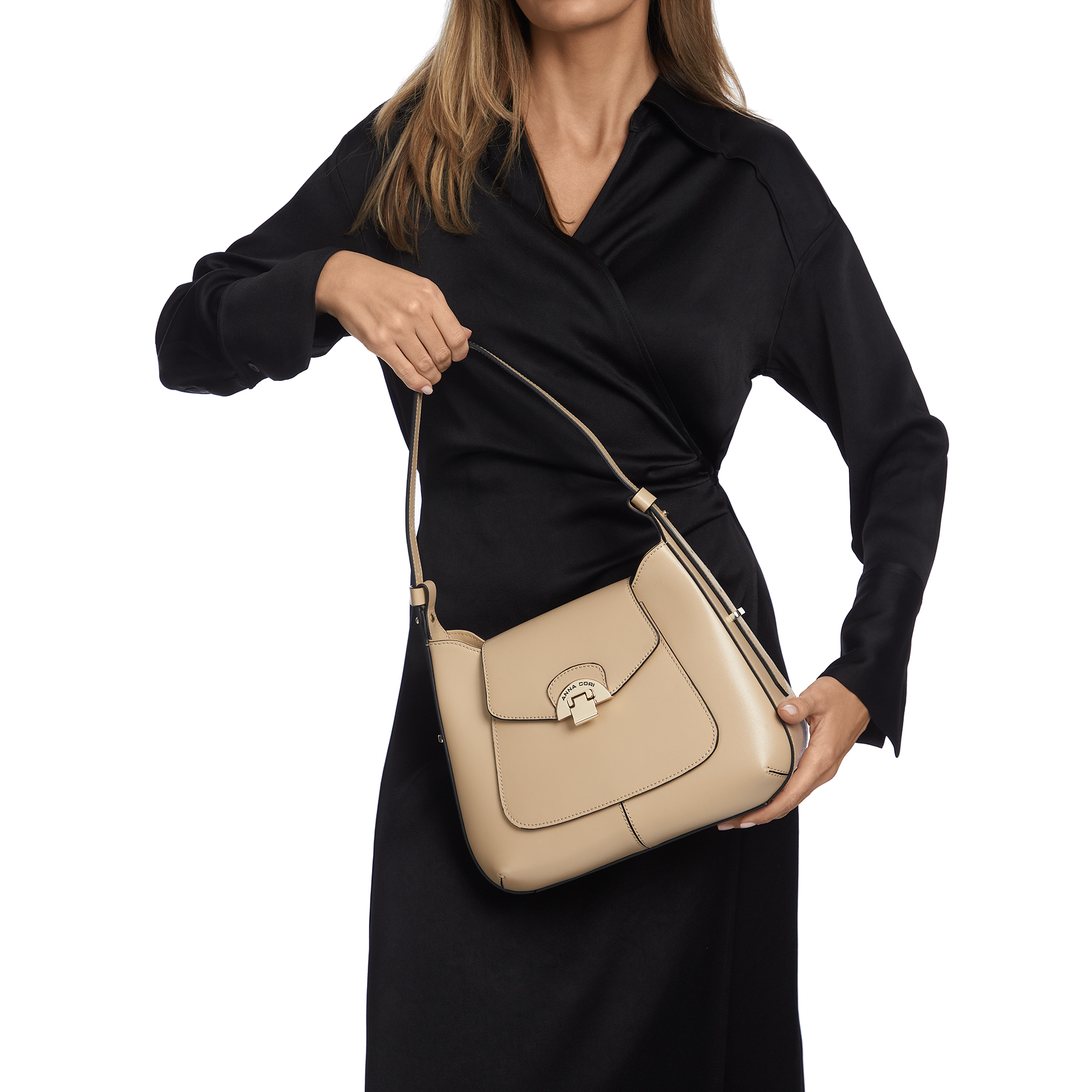 Spacious yet refined, the Adora bag is a shoulder bag in a classic shape, with a secure buckle closure and an adjustable genuine leather top handle.