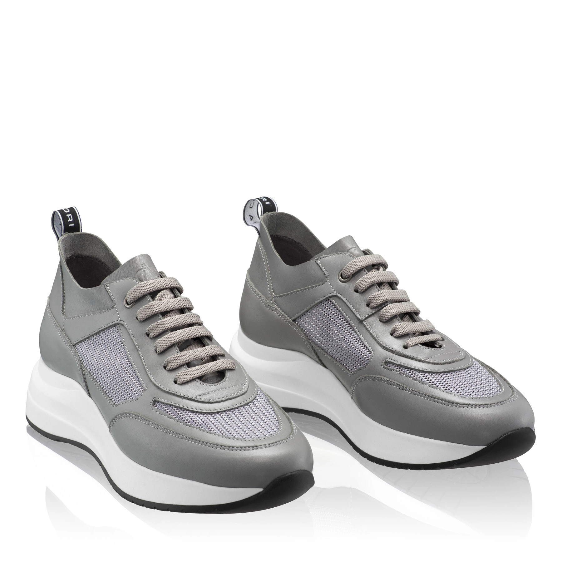 Women's sneakers made of genuine leather and textile material.Featuring a classic lace-up closure.