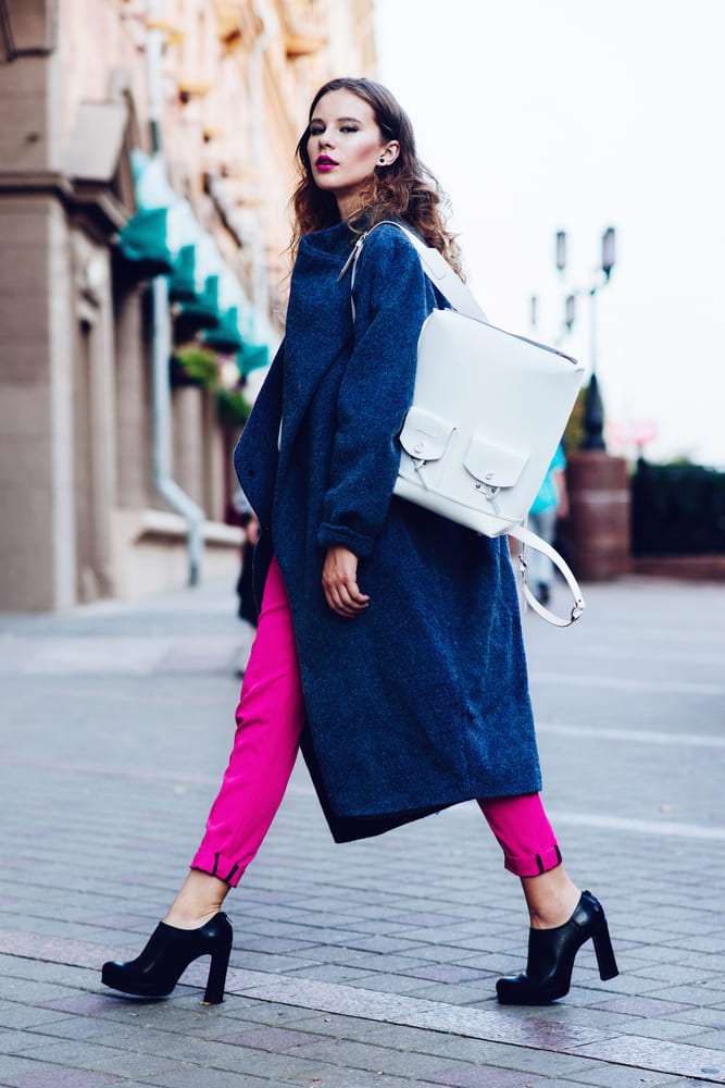 Caută în garderobă un trench lung și pantaloni într-o nuanță vibrantă. Adaugă o pereche de botine cu toc înalt, care îți va schimba imediat starea de spirit și îți va oferi încredere în tine. După cum spunea și Marylin Monroe: dă-i unei femei perechea potrivită de pantofi cu toc și va cuceri lumea!