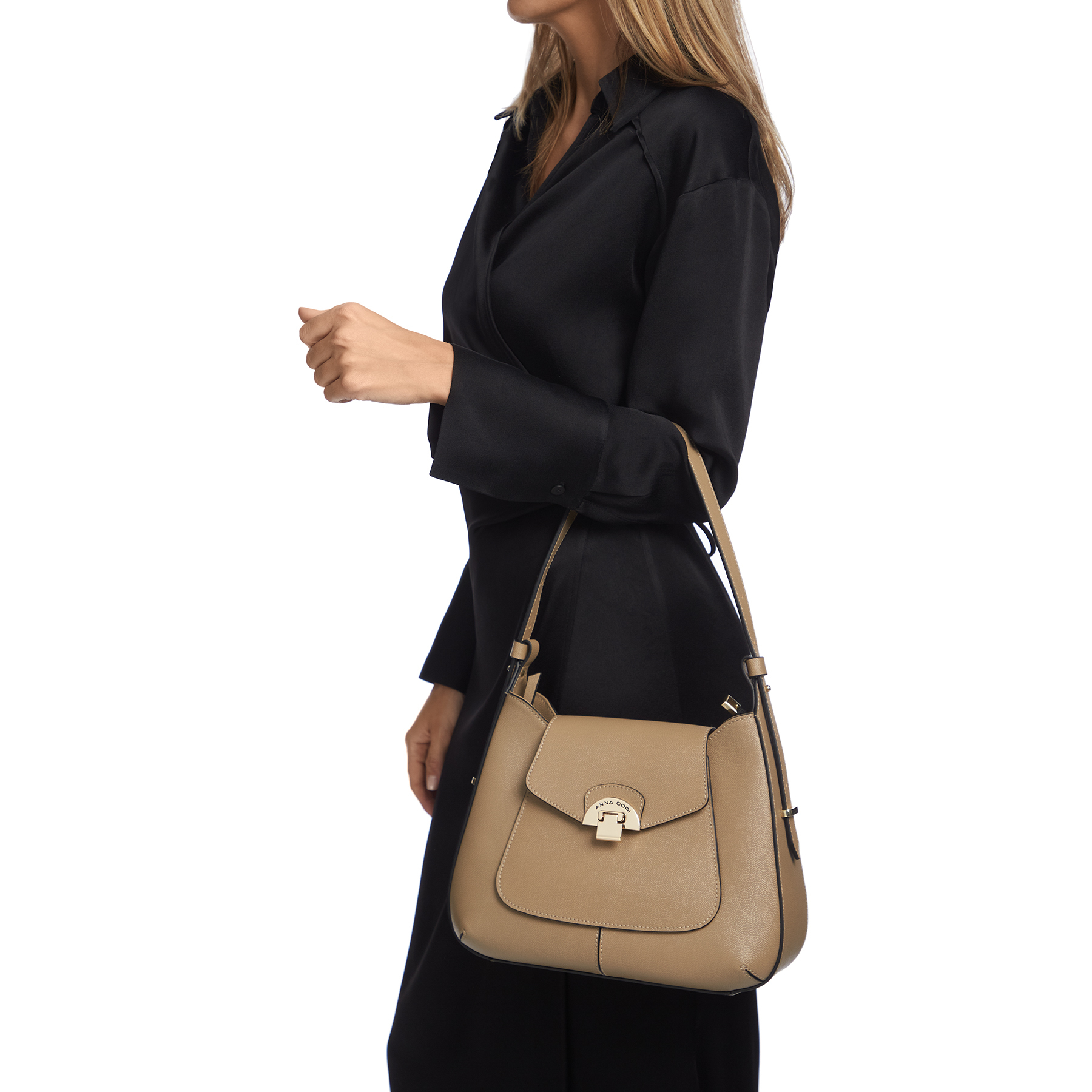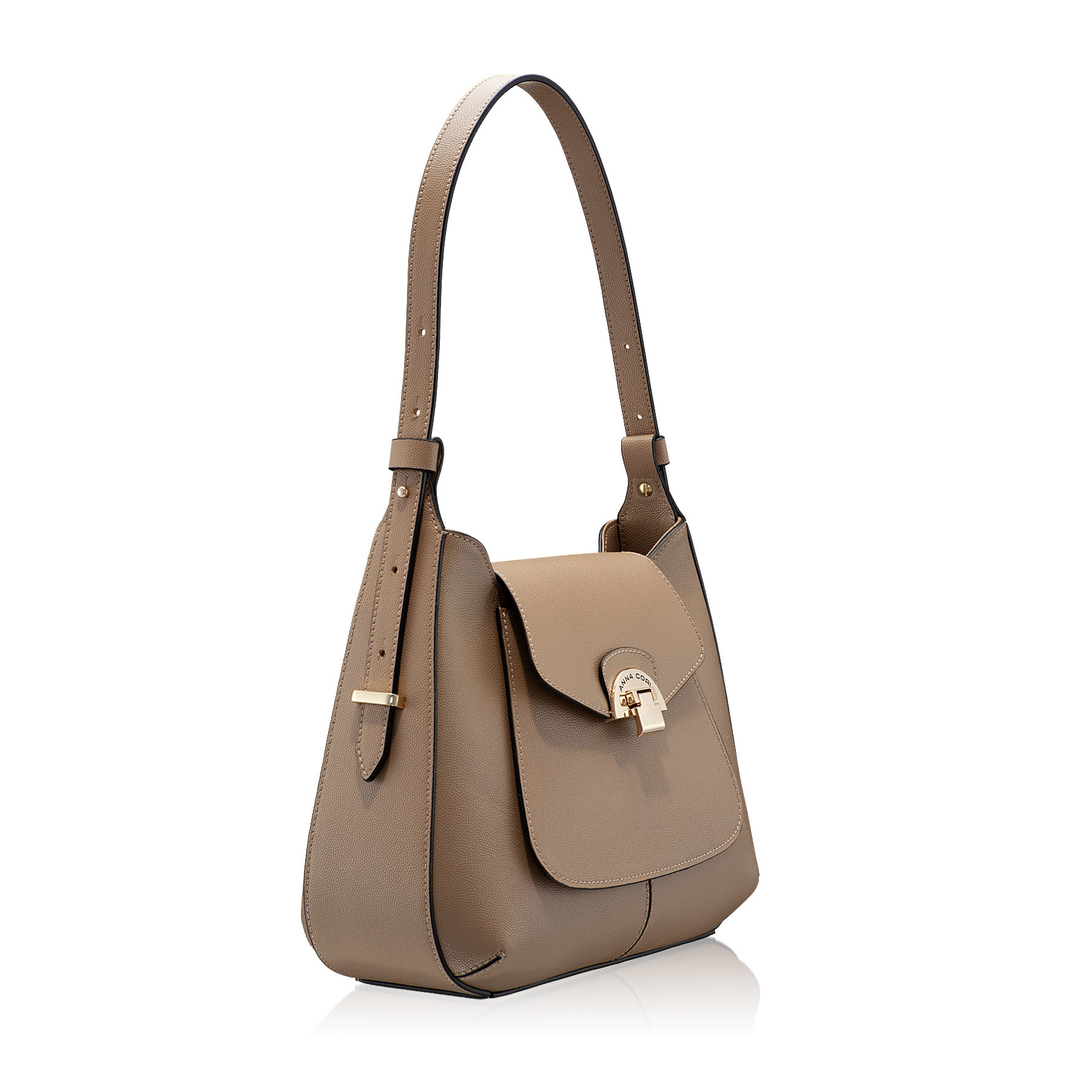 Spațioasă, dar rafinată, geanta Adora este o geantă de umăr într-o formă clasică, are o închidere sigură cu cataramă și un mâner ajustabil din piele naturală.
