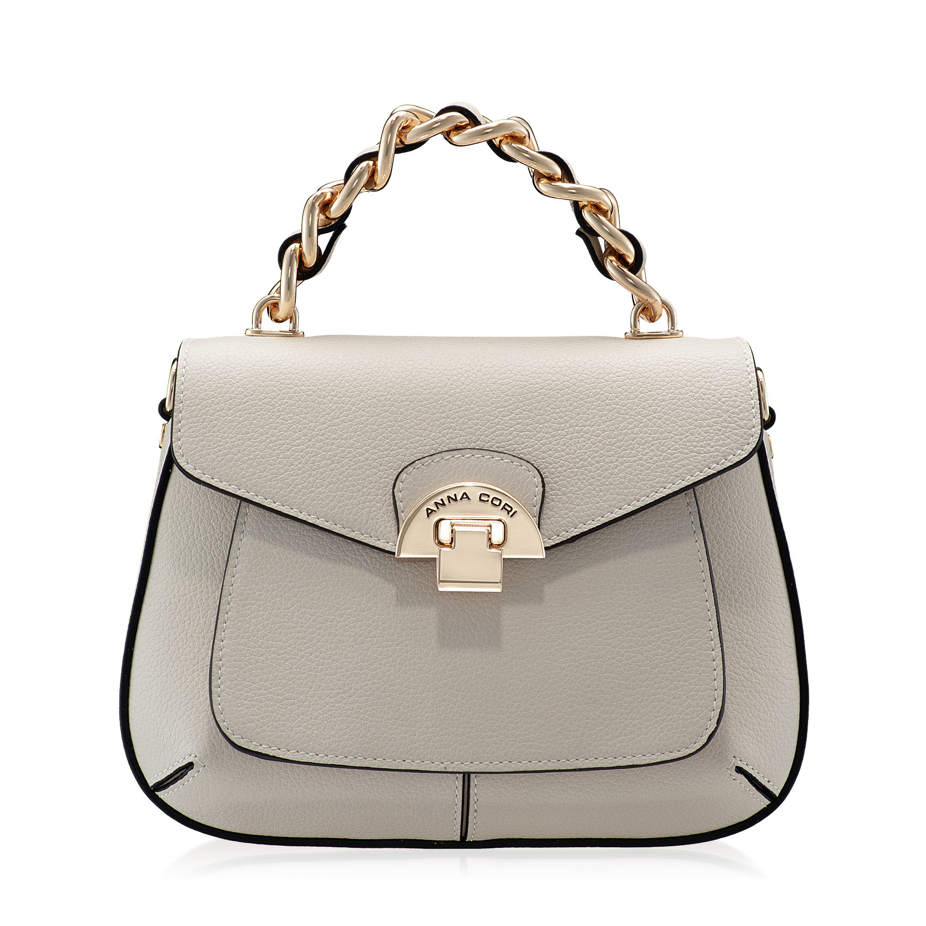Geanta #ALIDA este de dimensiuni relativ mici, într-o formă rotundă dar destul de încăpătoare și cu un farmec aparte. Este confecționată din piele naturală de vițel, cu accesorii aurii și multe buzunare. Mânerul prevăzut din lanț și piele, adaugă un plus de eleganță acestei genți.