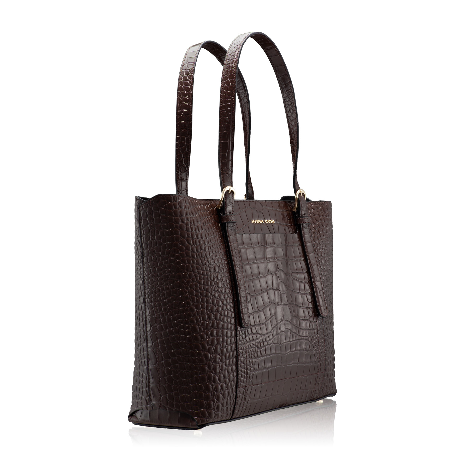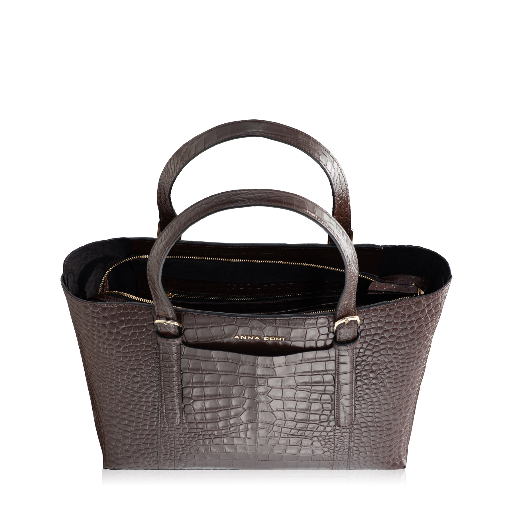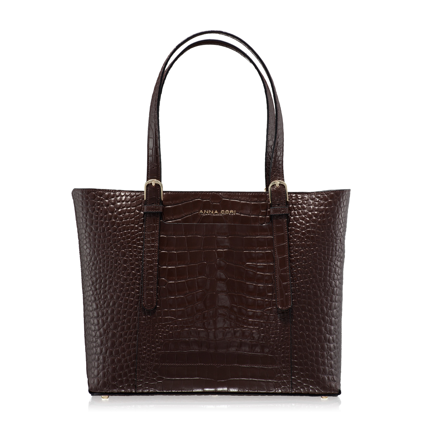 Geanta dama de umar din piele croco, cu logo ANNA CORI gravat.