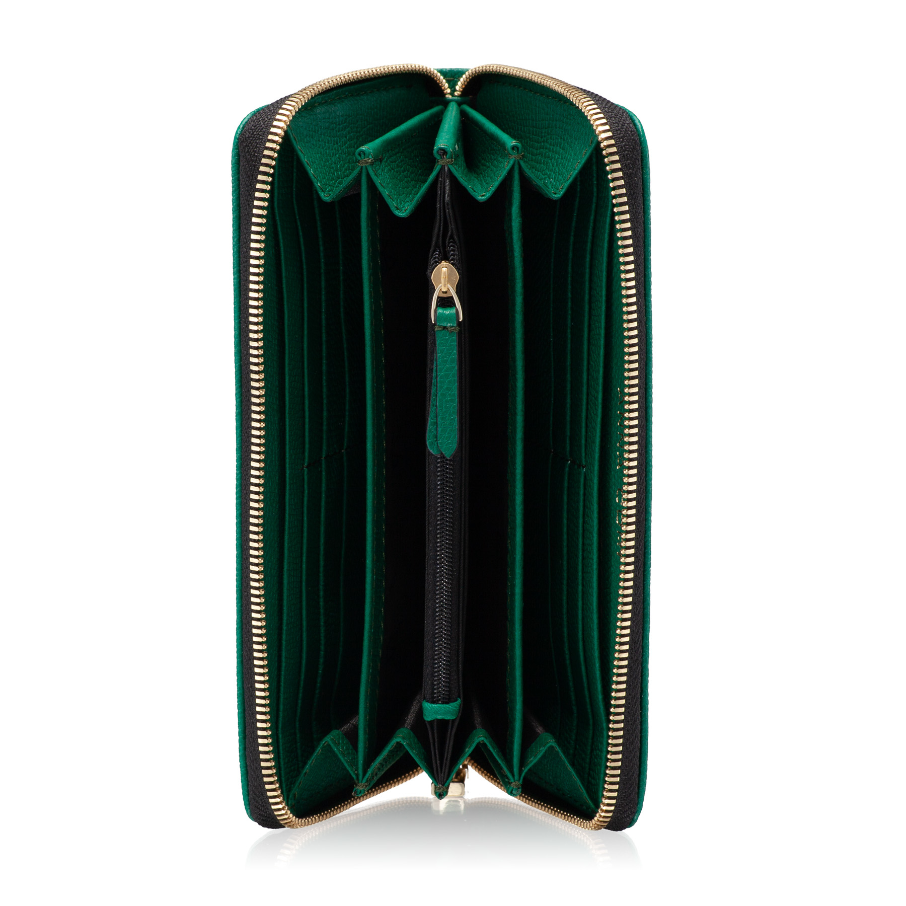 Portofel dama din piele naturala. Este prevazut cu 4 compartimente pentru depozitare bani, un buzunar cu fermoar pentru monede si 8 spatii pentru depozitare carduri.Inchiderea se face cu fermoar.
