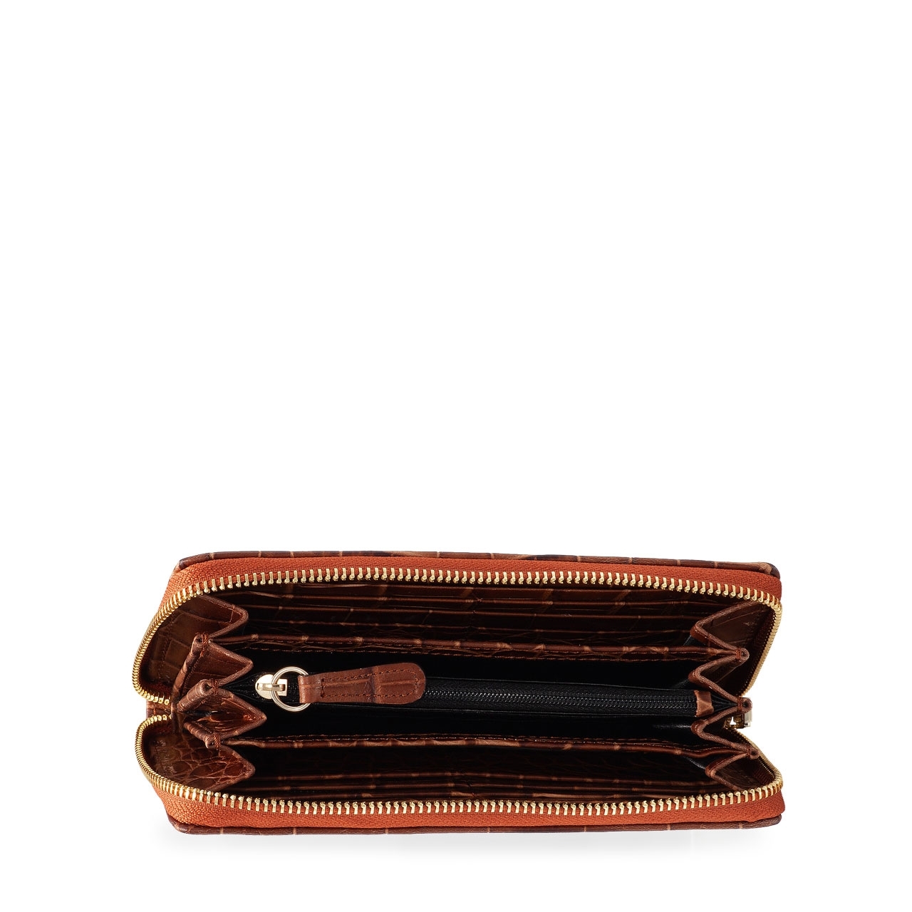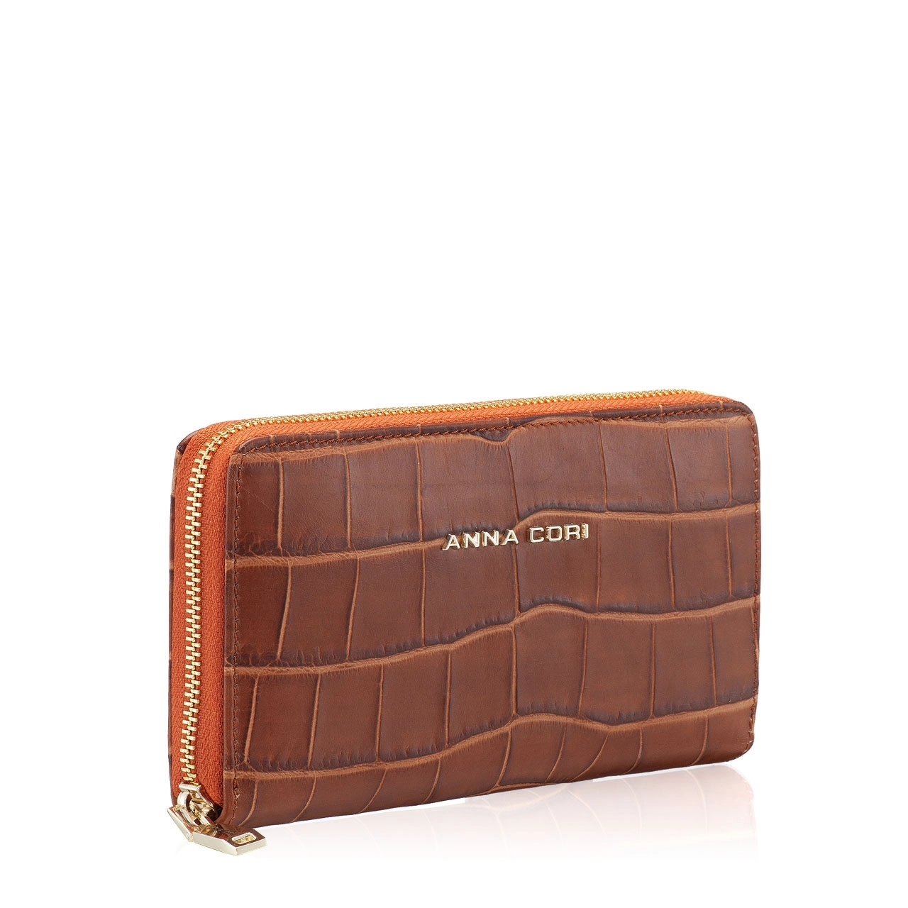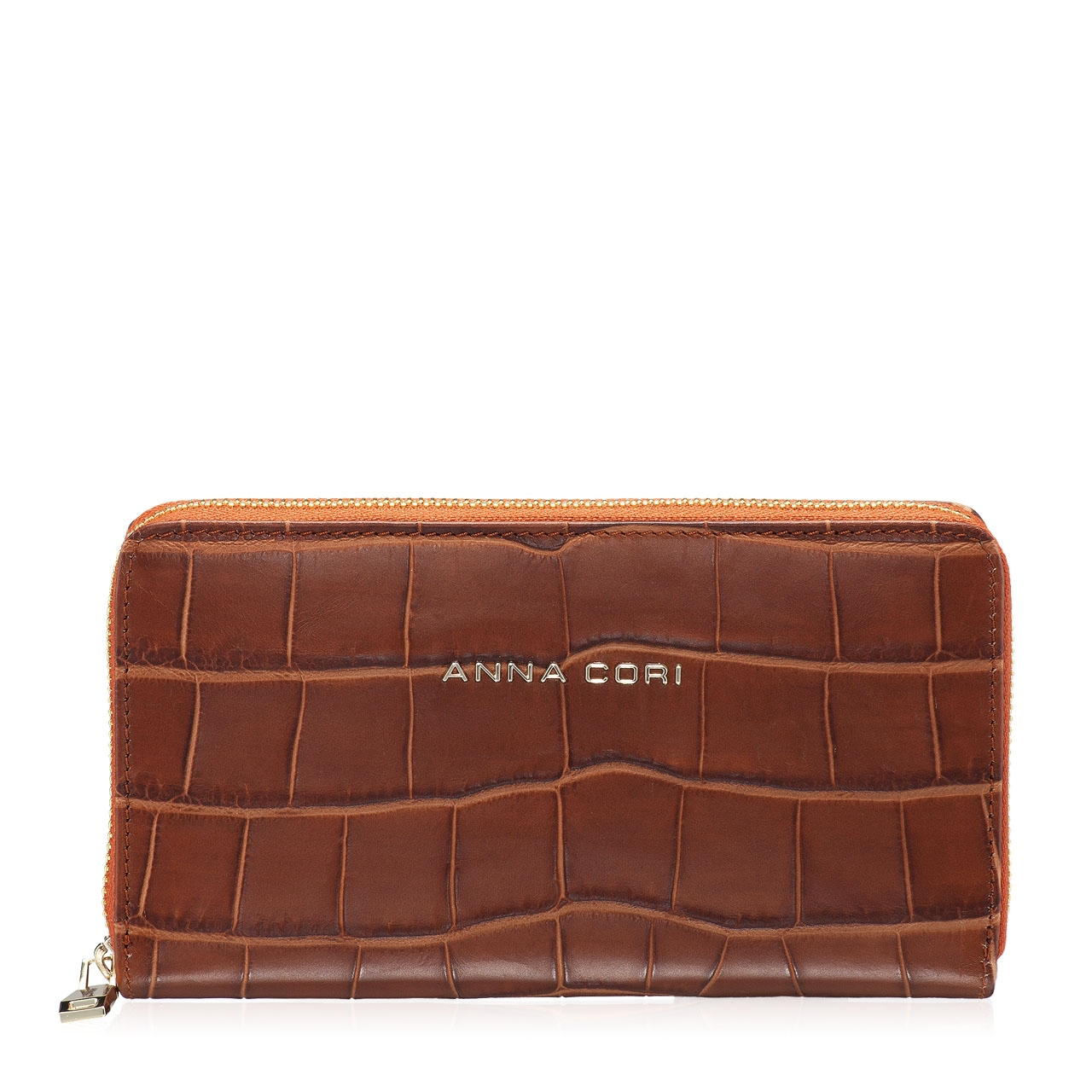 Portofel dama din piele naturala cocco. Este prevazut cu 4 compartimente, un buzunar cu fermoar pentru monede si 8 spatii pentru carduri.Inchiderea se face cu fermoar.