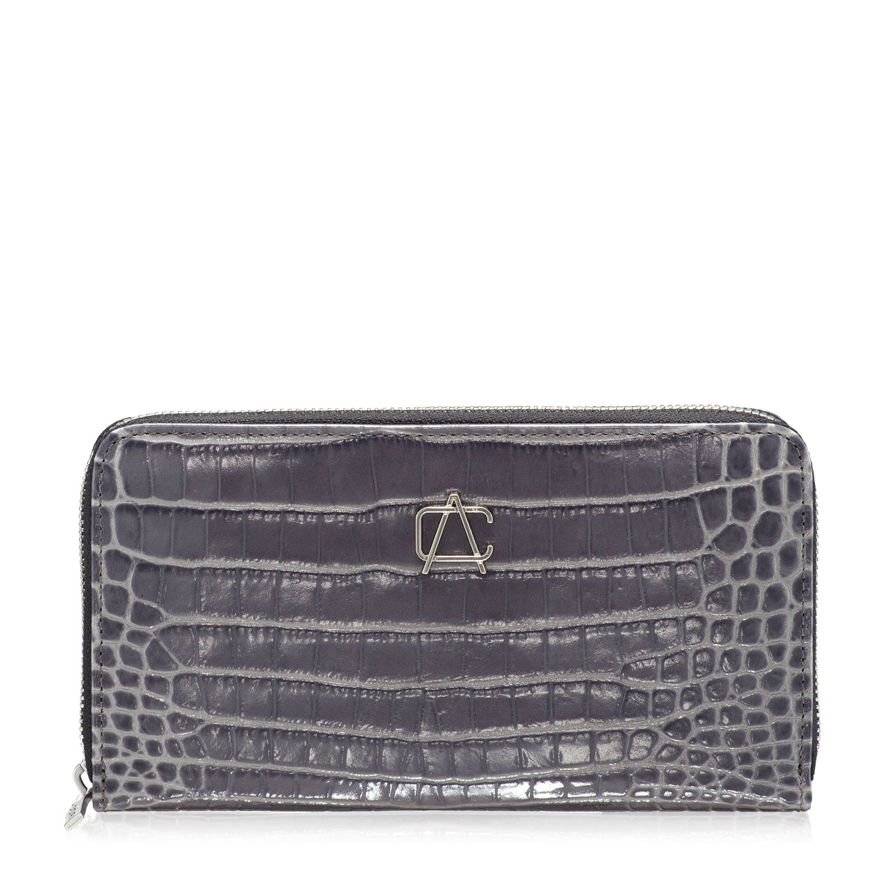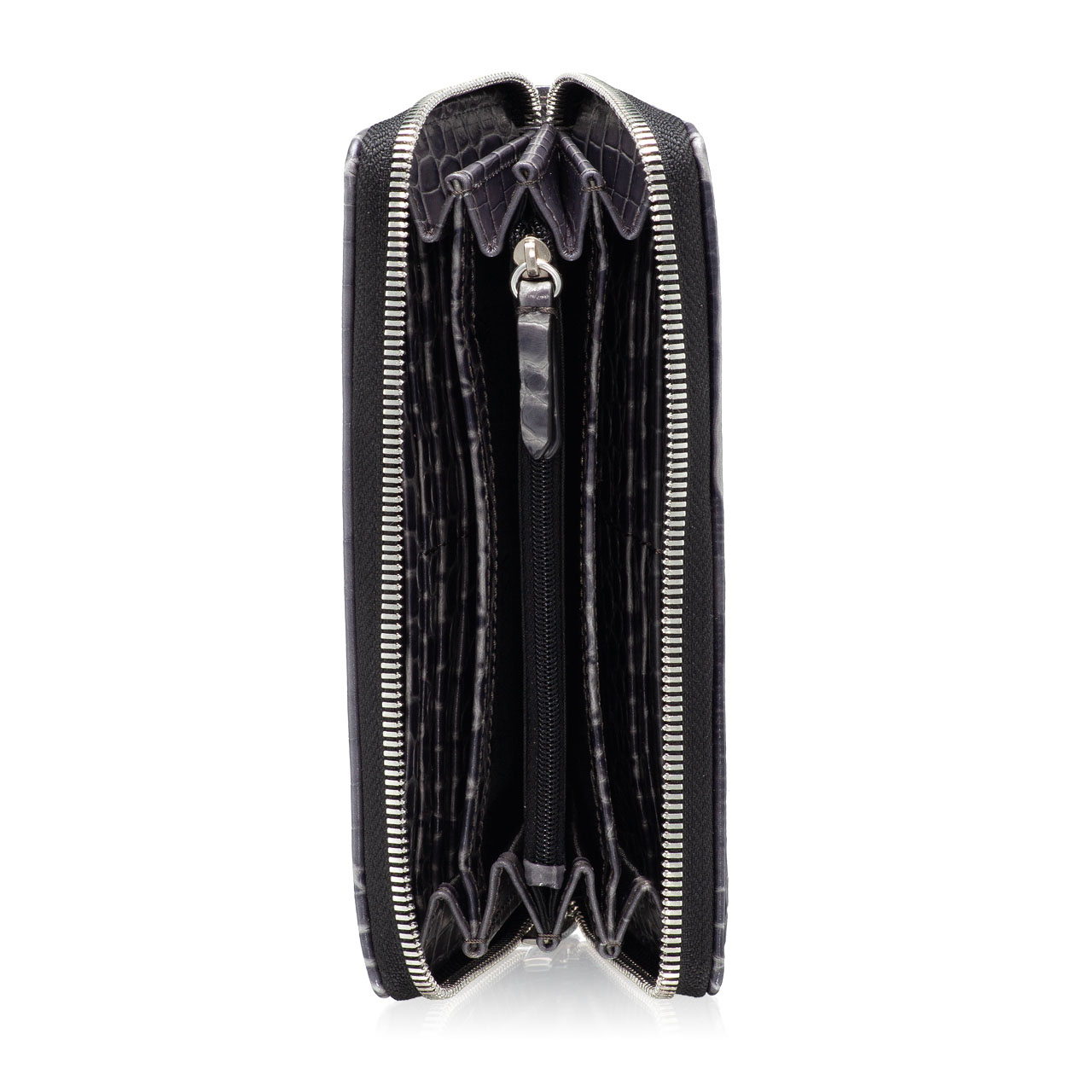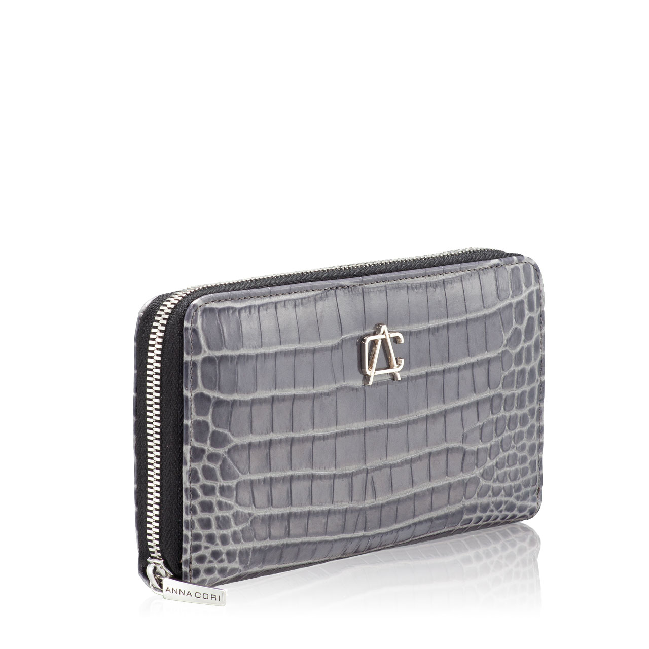 Portofel dama din piele naturala cocco. Este prevazut cu 4 compartimente, un buzunar cu fermoar pentru monede si 8 spatii pentru carduri. Inchiderea se face cu fermoar.