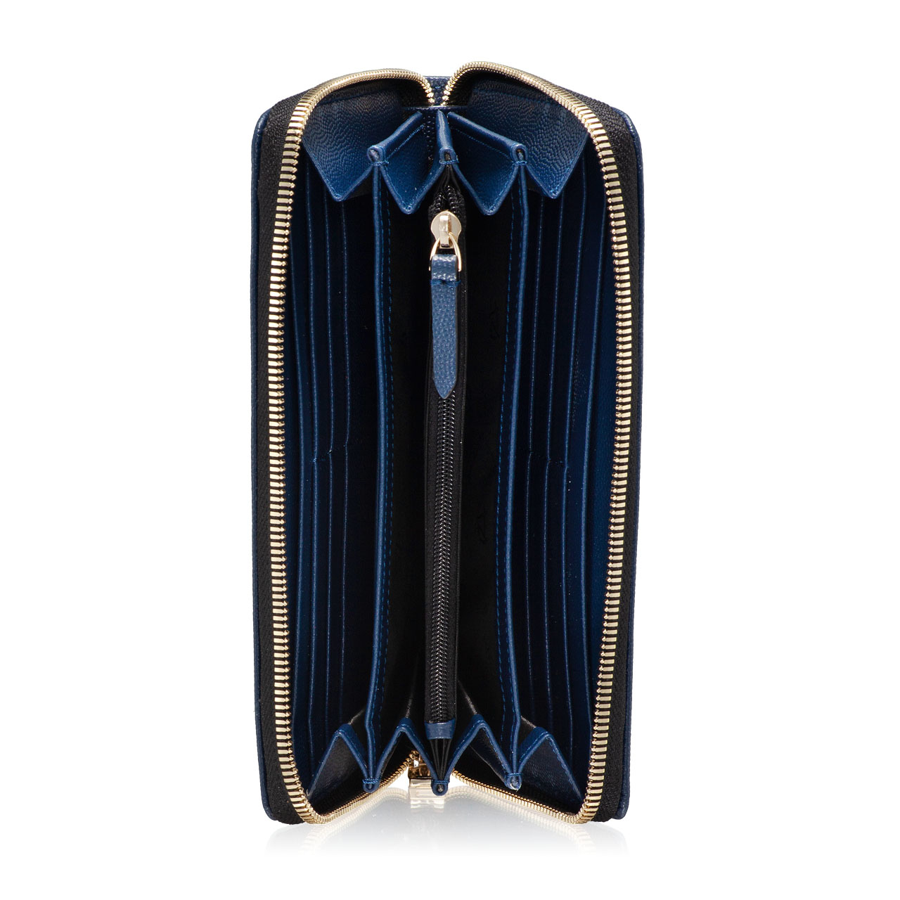 Este prevazut cu 4 compartimente, un buzunar cu fermoar pentru monede si 8 spatii pentru depozitare carduri.