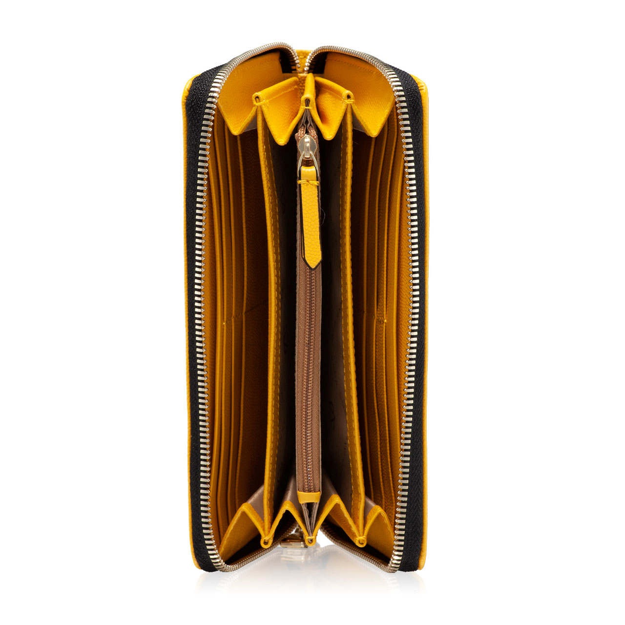 Este prevazut cu 4 compartimente, un buzunar cu fermoar pentru monede si 8 spatii pentru depozitare carduri.