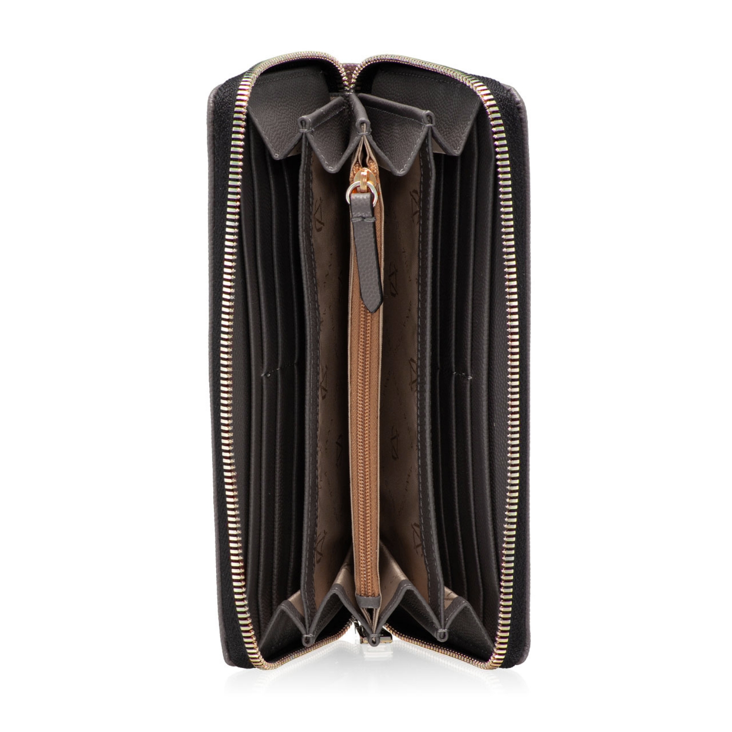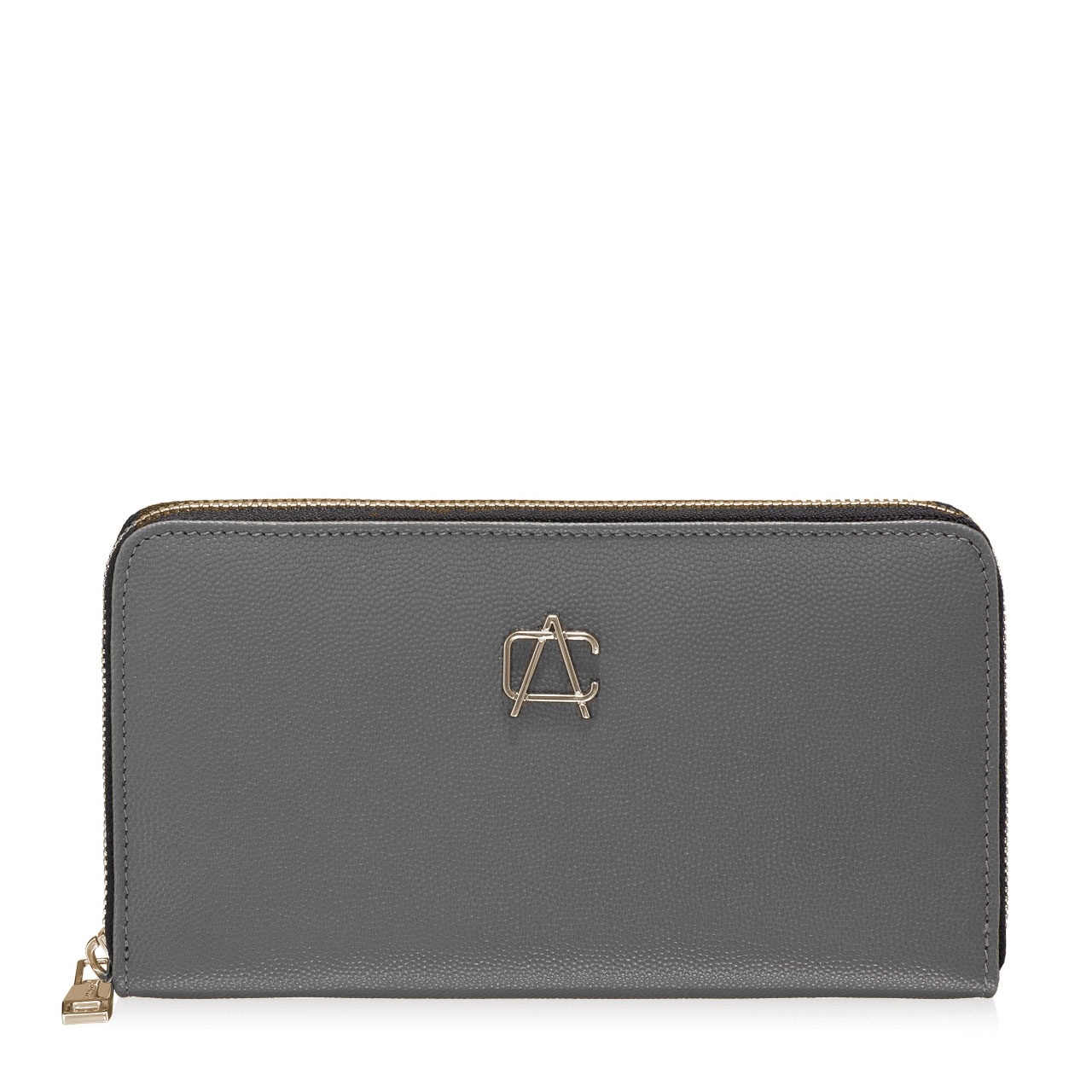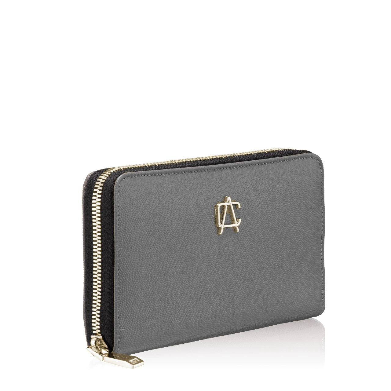Portofel dama din piele naturala stampata, personalizat cu monograma Anna Cori. Este prevazut cu 4 compartimente, un buzunar cu fermoar pentru monede si 8 spatii pentru depozitare carduri. Inchiderea se face cu fermoar.