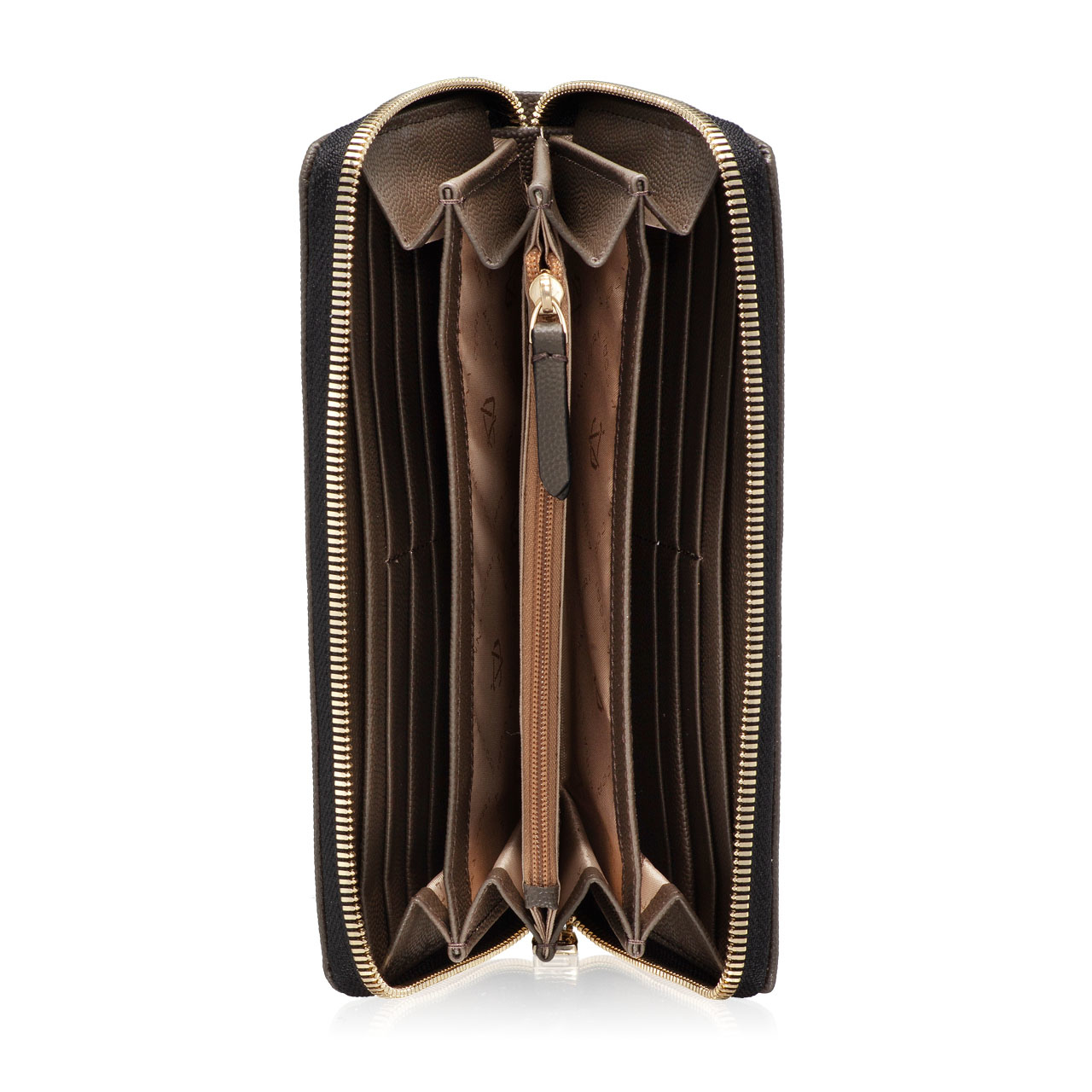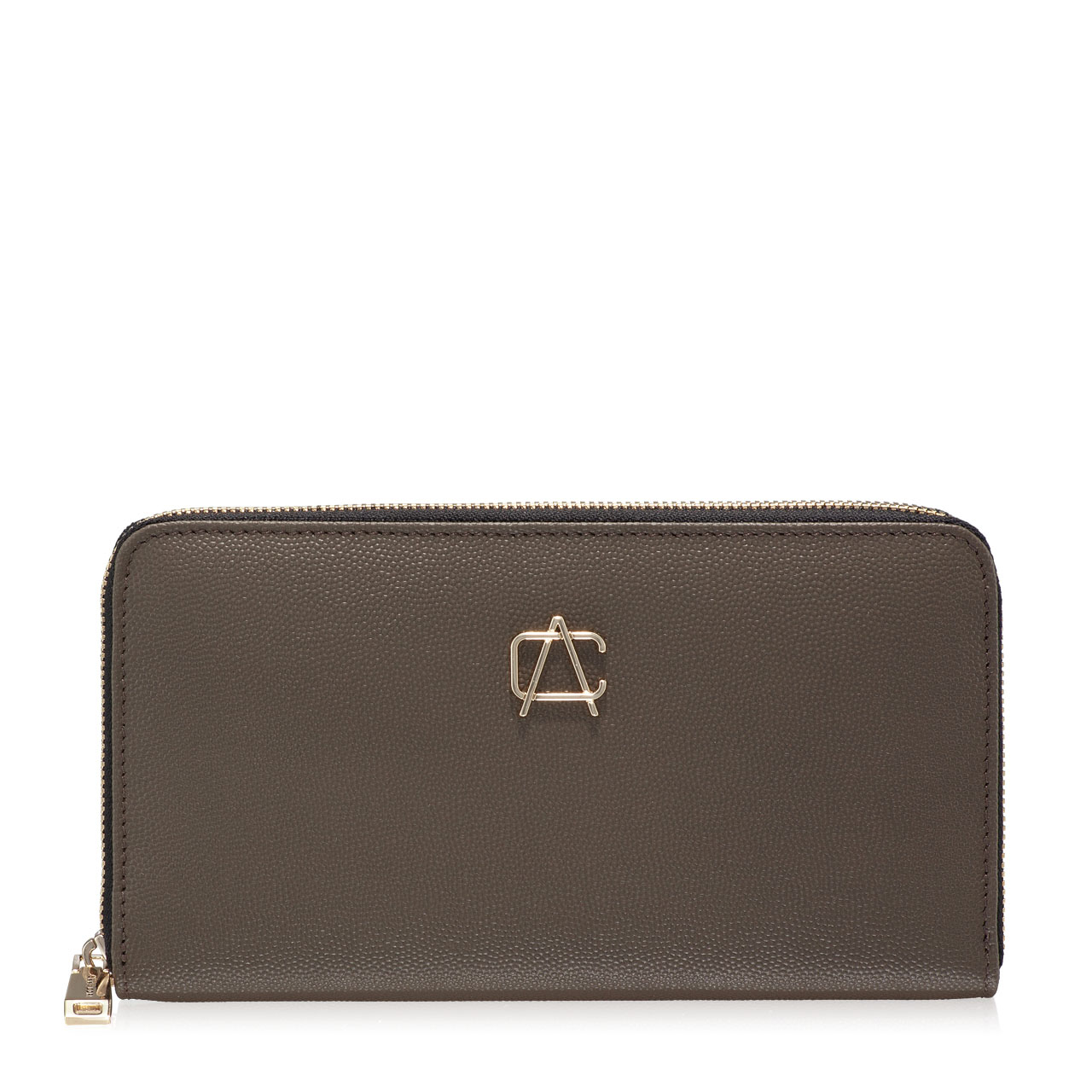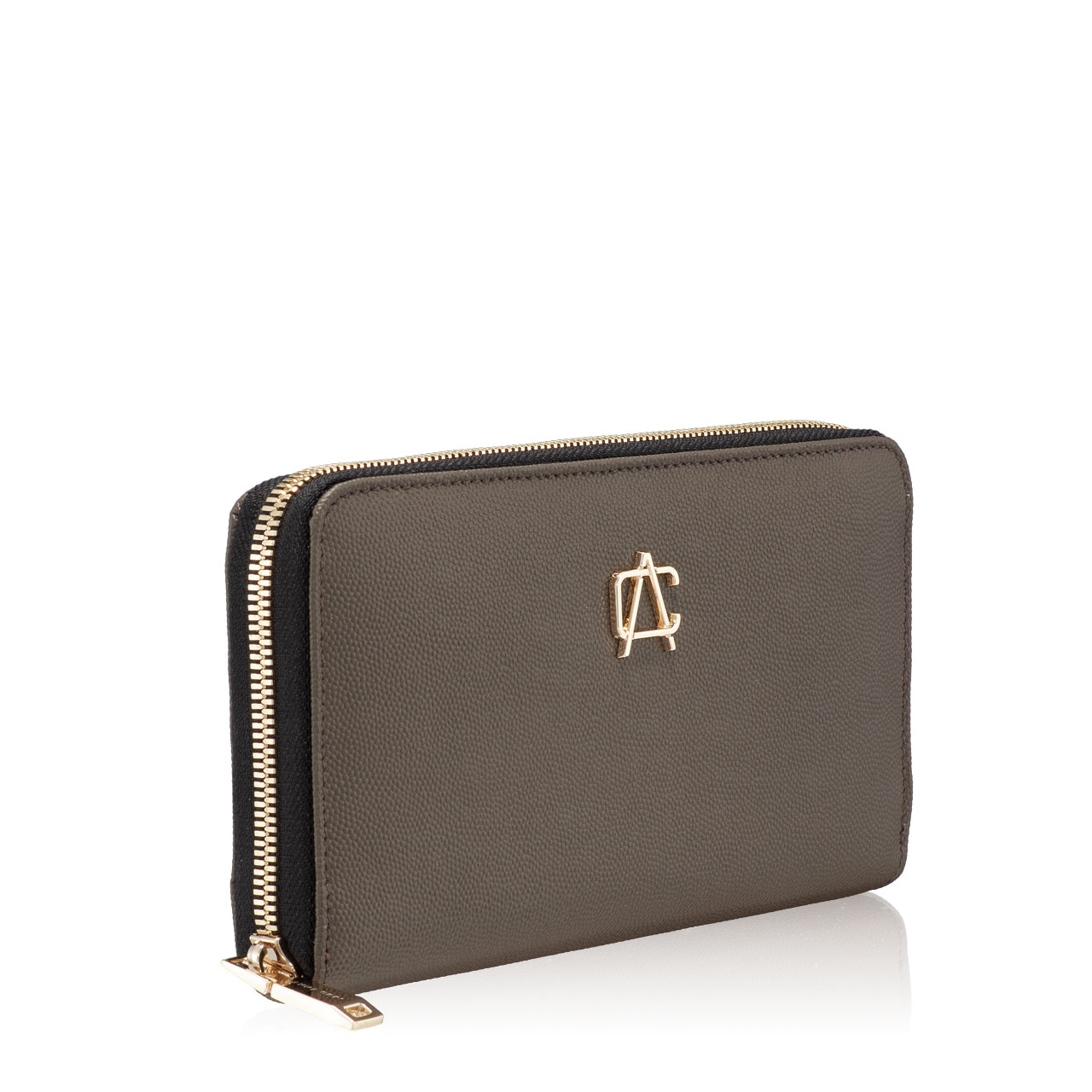 Portofel dama din piele naturala stampata, personalizat cu monograma Anna Cori. Este prevazut cu 4 compartimente, un buzunar cu fermoar pentru monede si 8 spatii pentru depozitare carduri. Inchiderea se face cu fermoar.