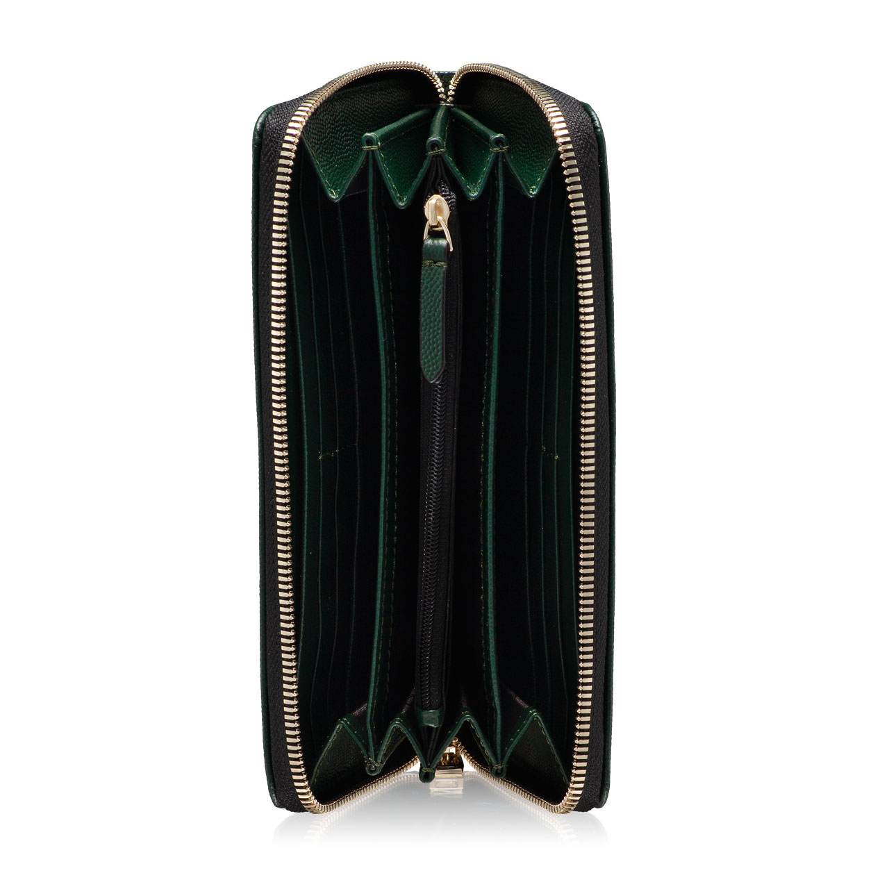 Este prevazut cu 4 compartimente, un buzunar cu fermoar pentru monede si 8 spatii pentru depozitare carduri.