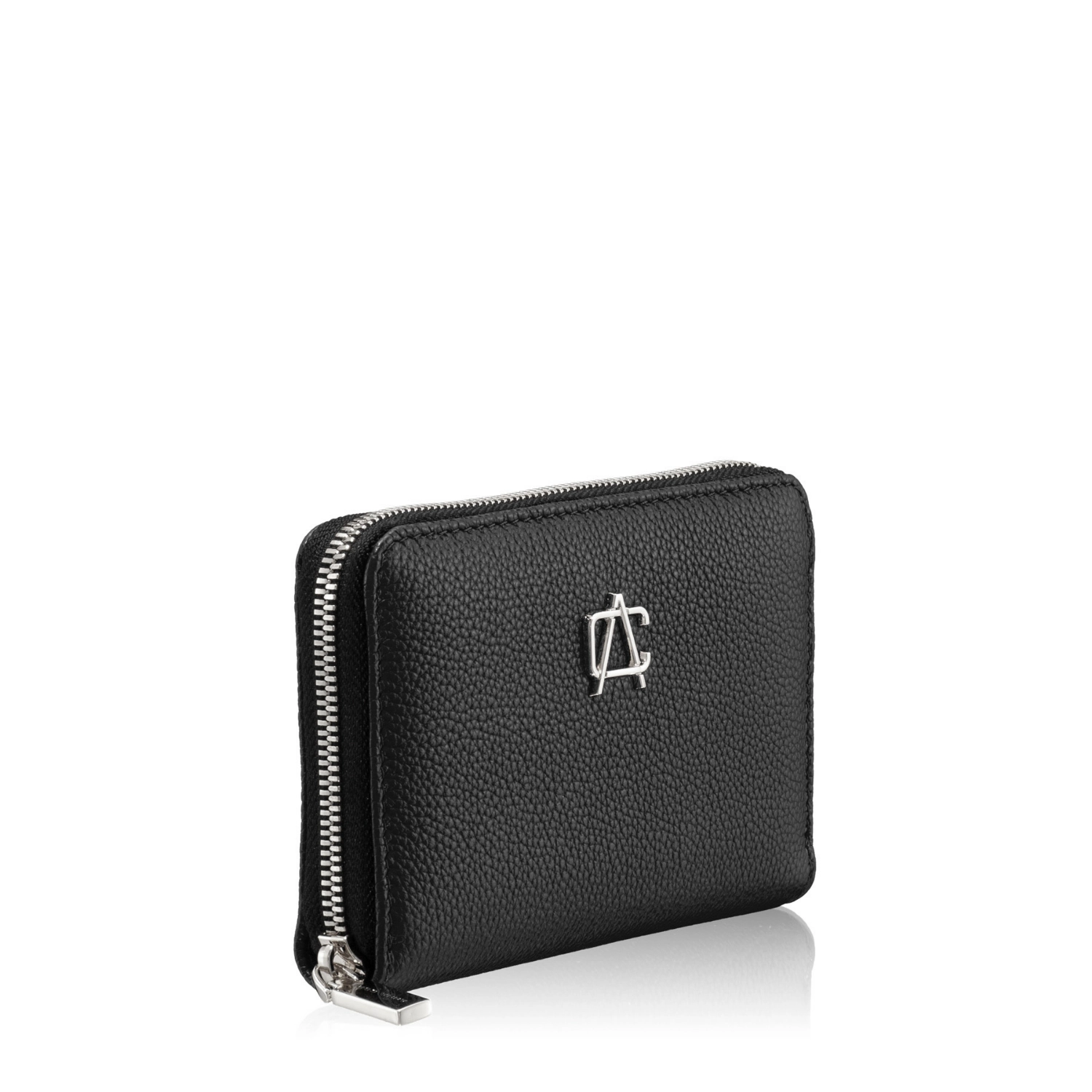 Portofel dama din piele naturala, personalizat cu monograma ANNA CORI. Este prevazut cu 3 compartimente, un buzunar cu fermoar pentru monede si 8 spatii pentru carduri.