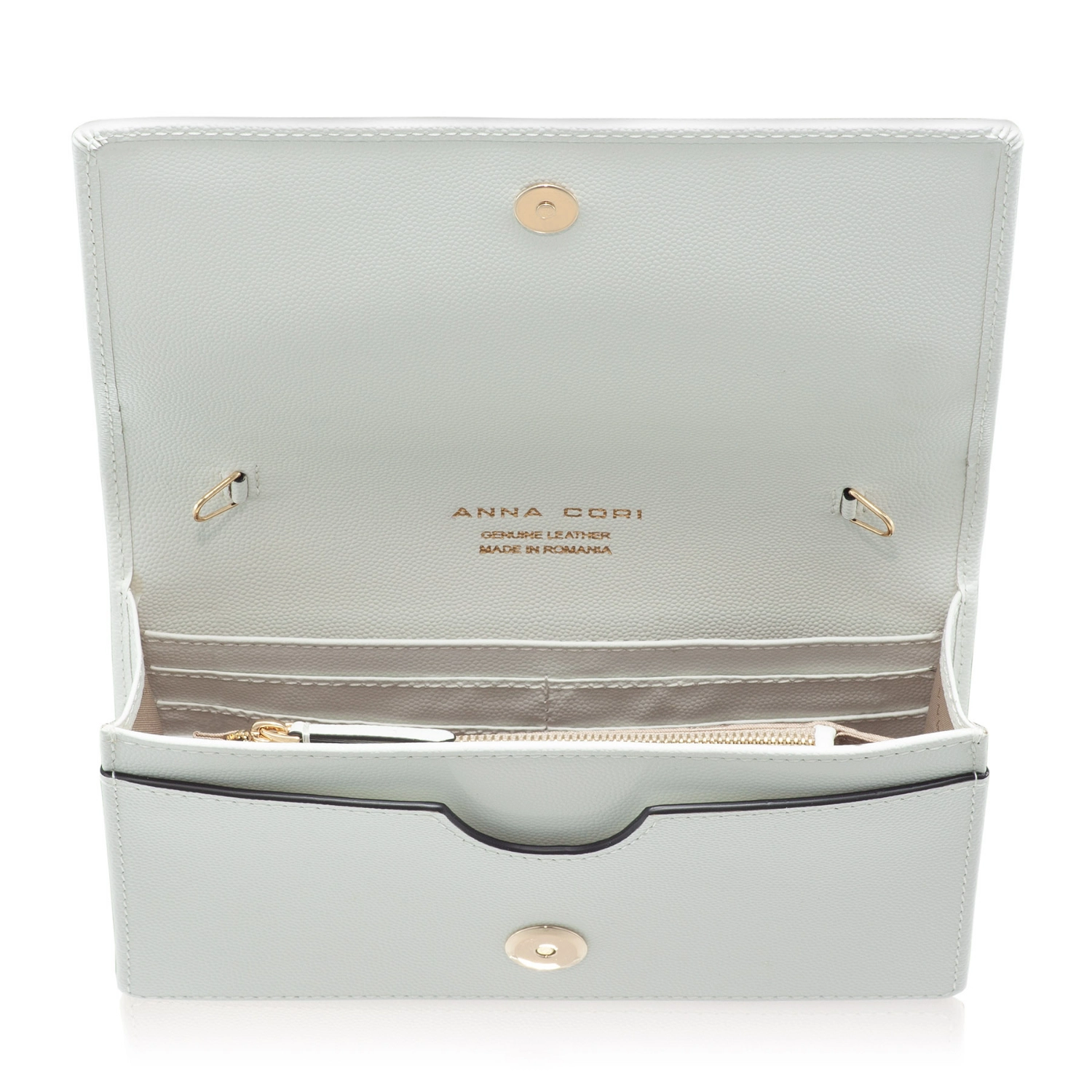 Geanta plic #ARNA este un model Icon Anna Cori datorită eleganței de care dă dovadă și diversității nuanțelor în care se regăsește. Este compartimentată într-un mod complex, având două compartimente, un buzunar central cu fermoar și 6 spații pentru depozitare carduri. Monograma Anna Cori din metal auriu adaugă un plus de eleganță.