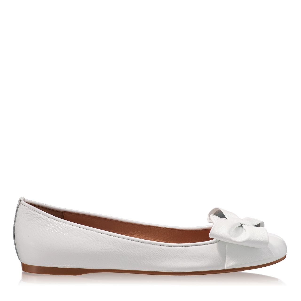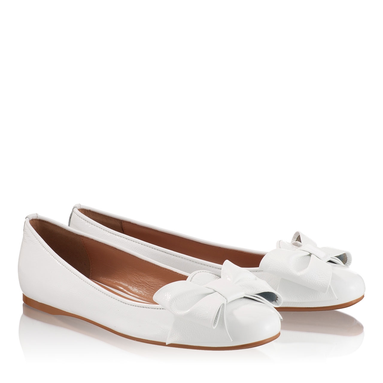 Balerini dama din piele lacuita, accesorizati cu funda.