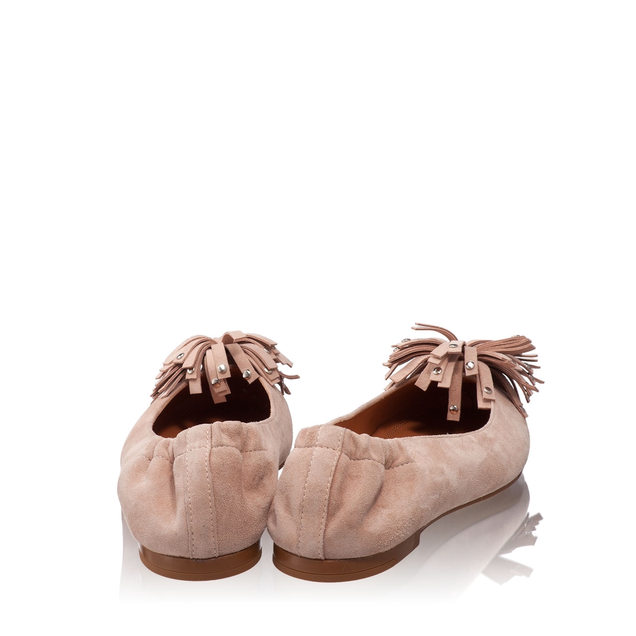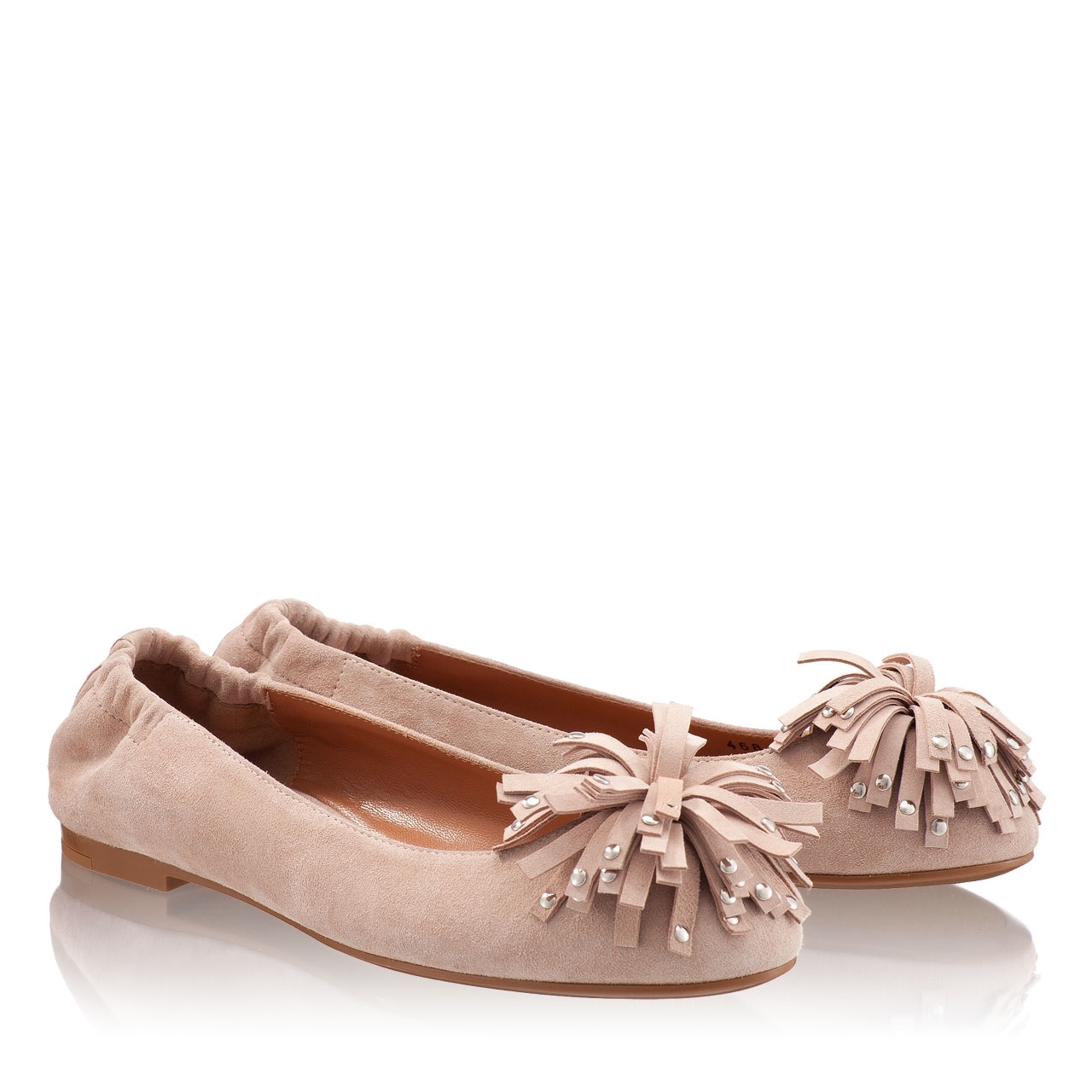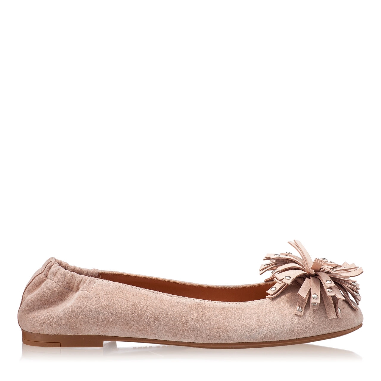 Balerini dama din piele intoarsa, captusiti cu piele naturala, prevazuti cu accesoriu.