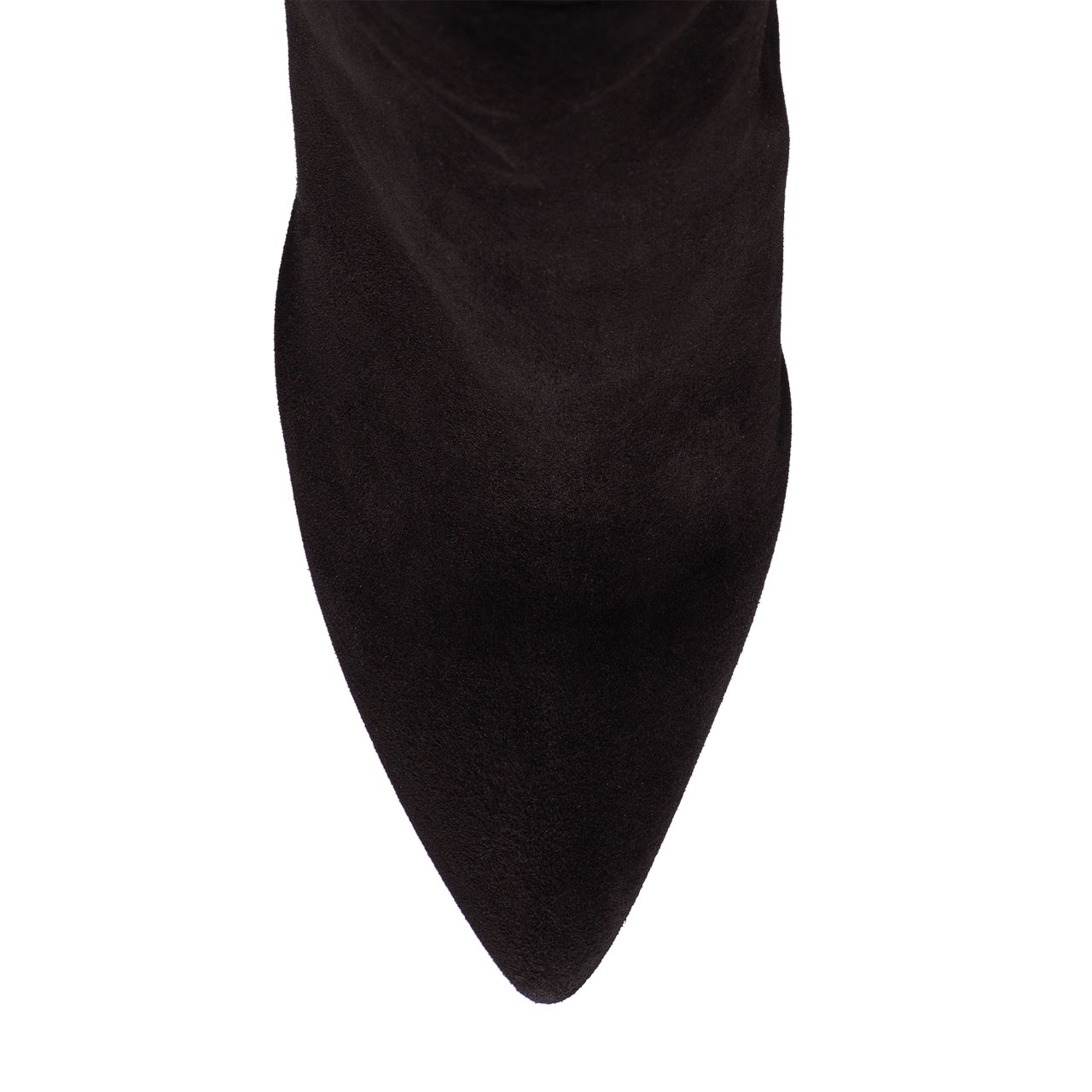 Botine dama elegante, din piele intoarsa, prevazute cu accesoriu personalizat AC.Inchiderea se face cu fermoar.