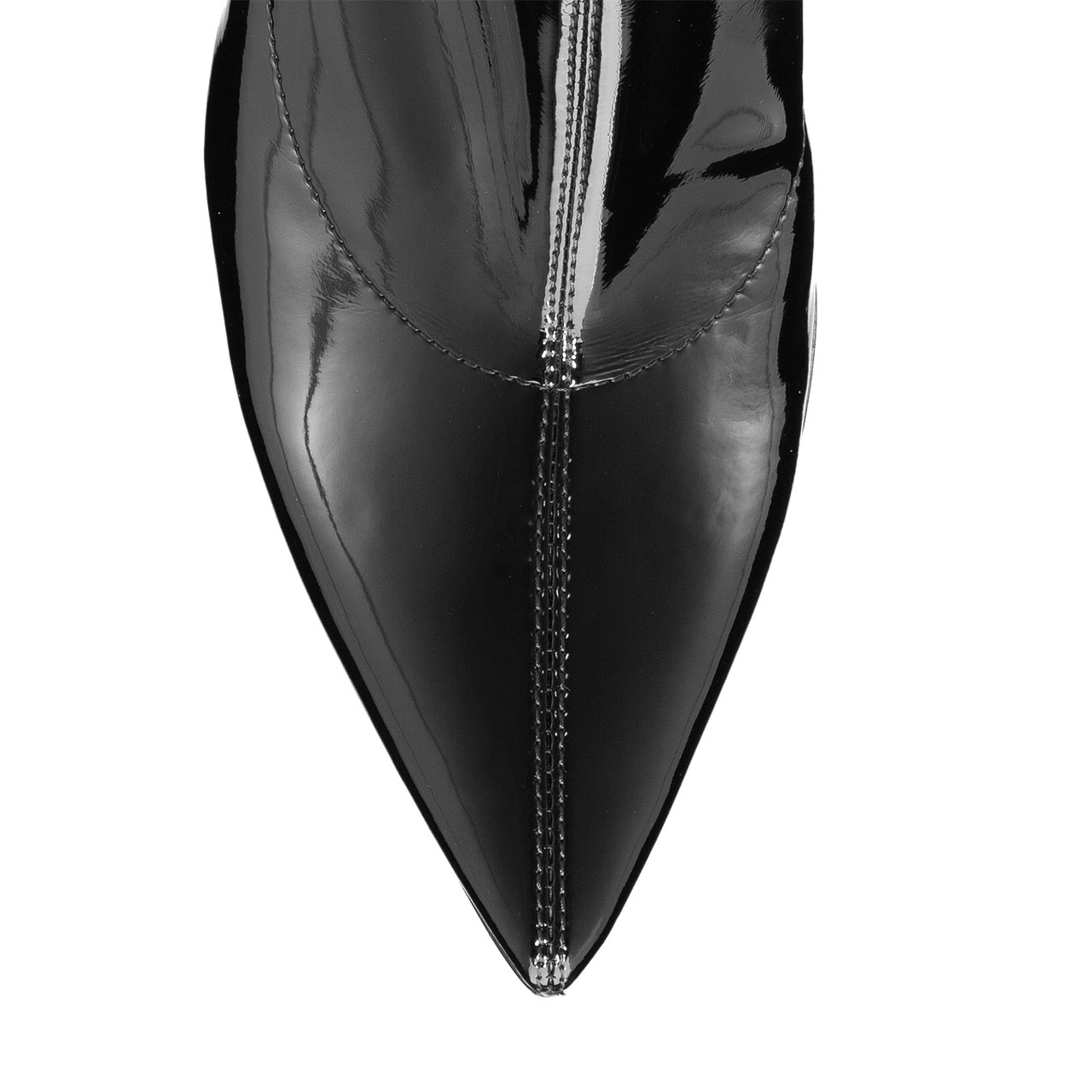 Botine dama cu toc de inaltime medie, din piele lacuita stretch.