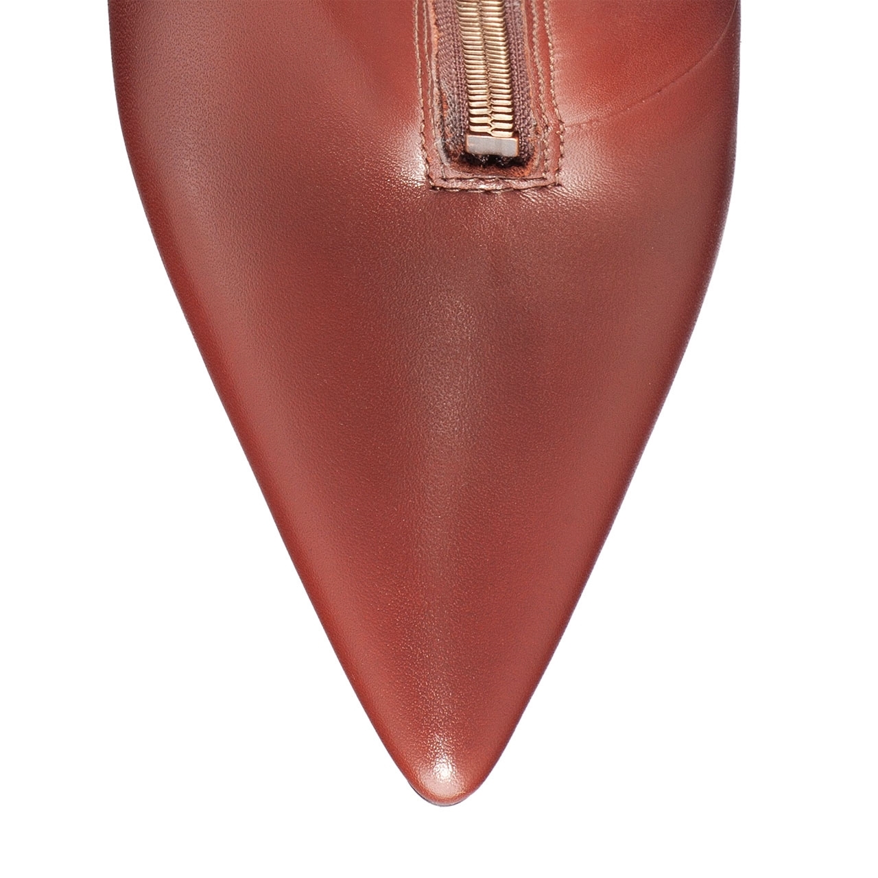 Botine dama din piele naturala. Inchiderea se face cu fermoar in partea din fata, iar in interior sunt captusite cu piele naturala.