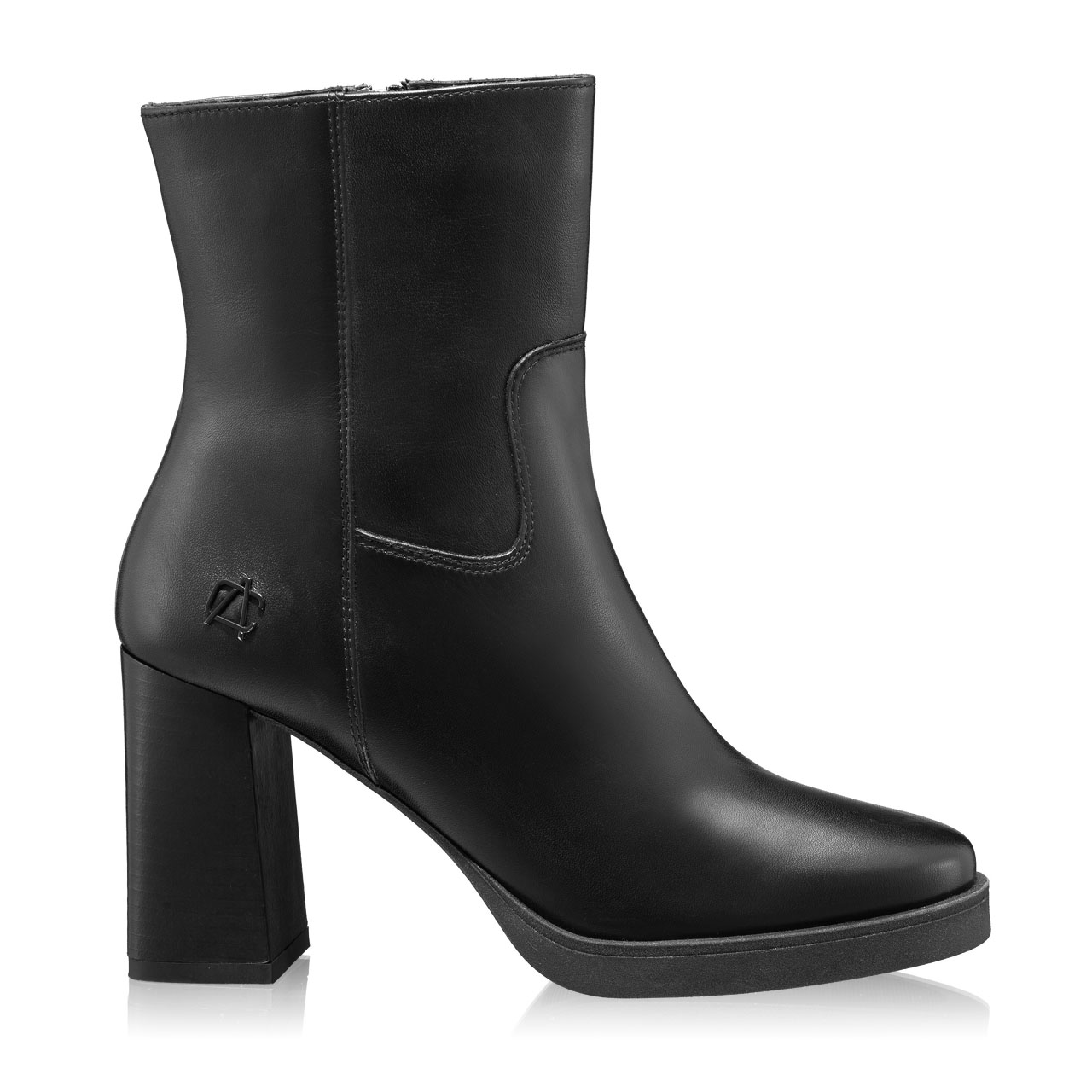 Botine dama din piele naturala, personalizate cu monograma Anna Cori si captusite cu blana. Inchiderea se face cu fermoar, iar inaltimea tocului este de 75mm.