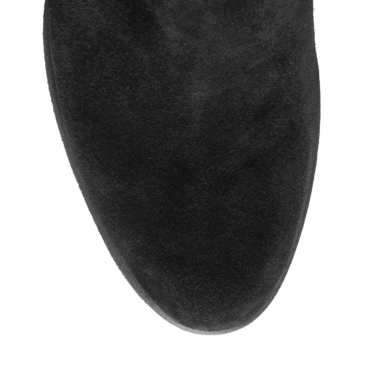Botine dama din piele intoarsa, captusite cu blana.Sunt accesorizate cu monograma Anna Cori.Inchiderea se face cu fermoar. Inaltimea tocului este de 70mm.