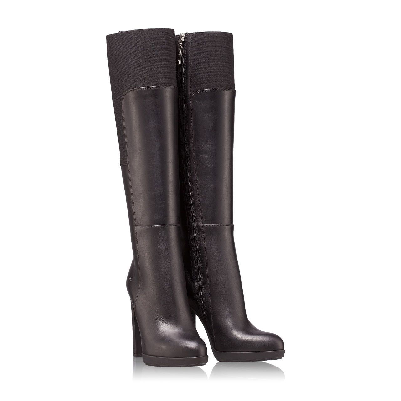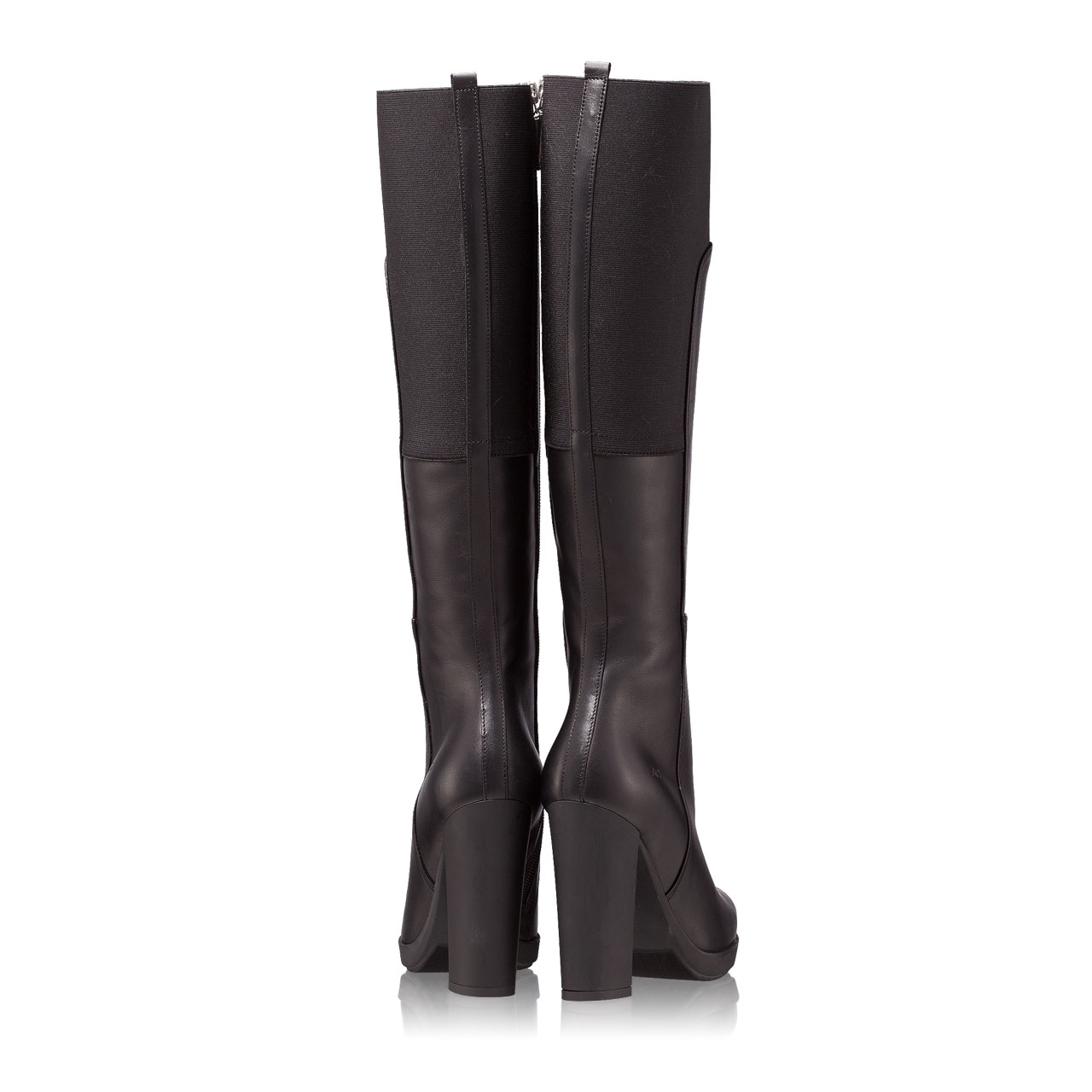 Cizme dama din piele naturala si material elastic.Inchiderea se face cu fermoar lateral.
