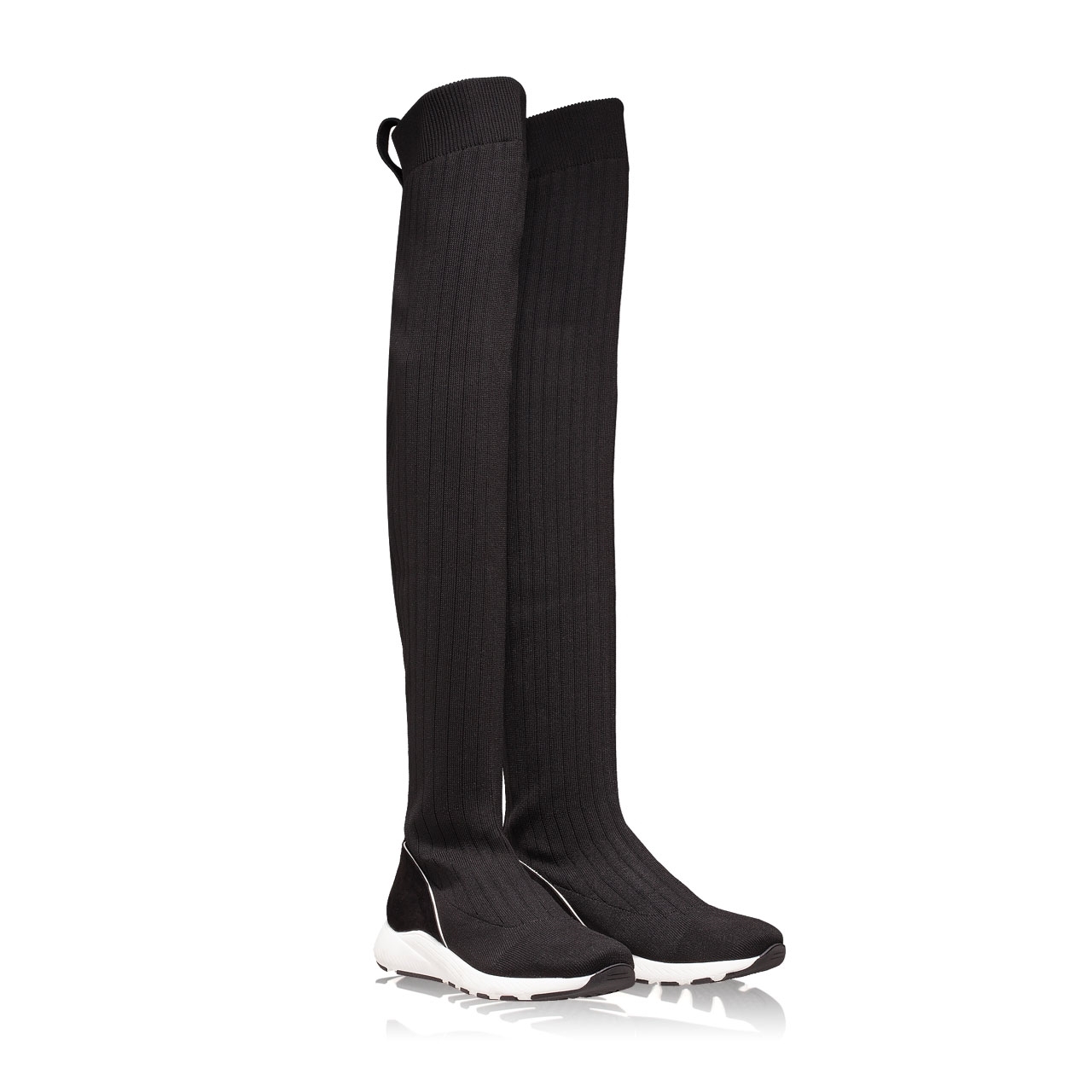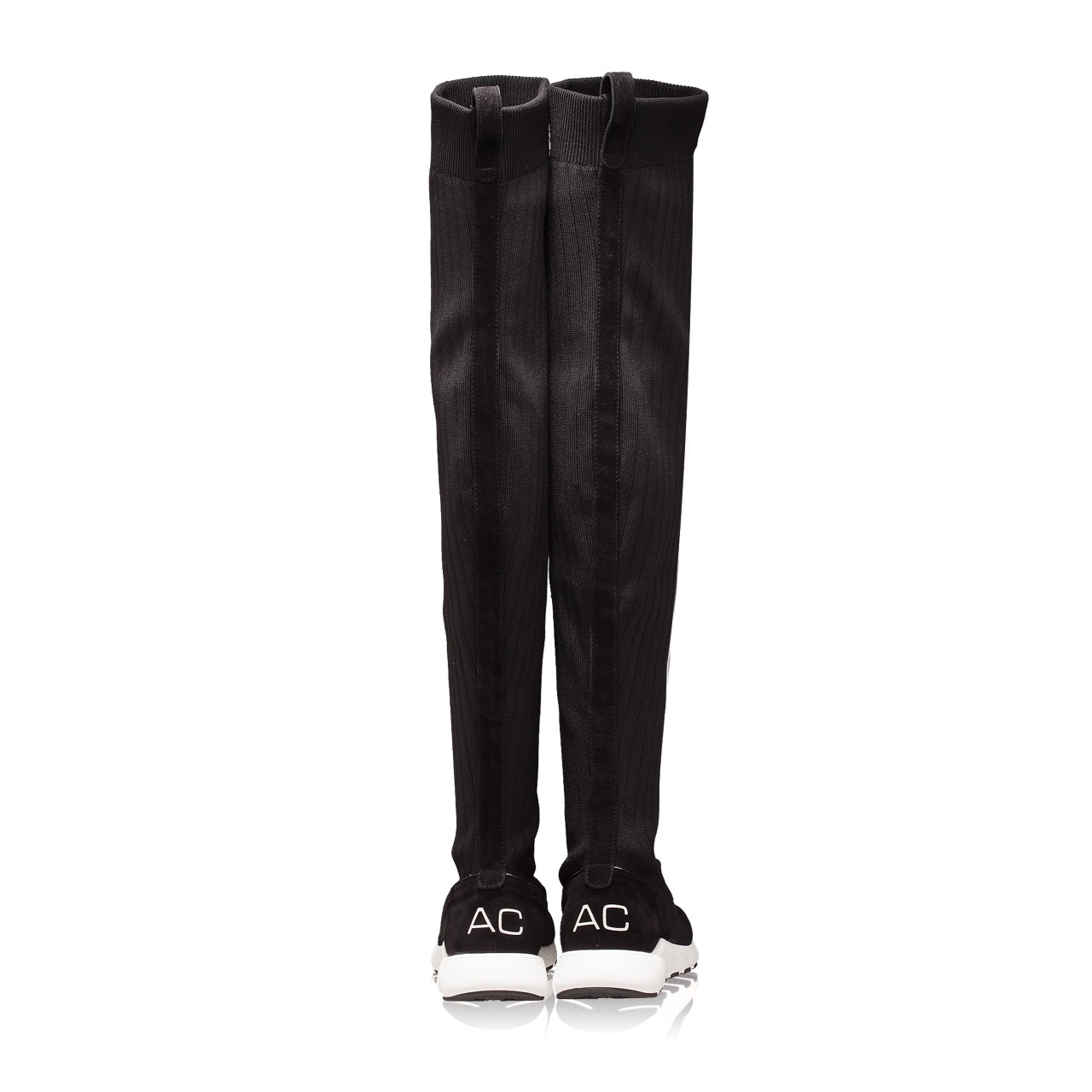 Cizme dama peste genunchi din piele intoarsa si material textil.Sunt prevazute cu detaliu personalizat - logo AC.