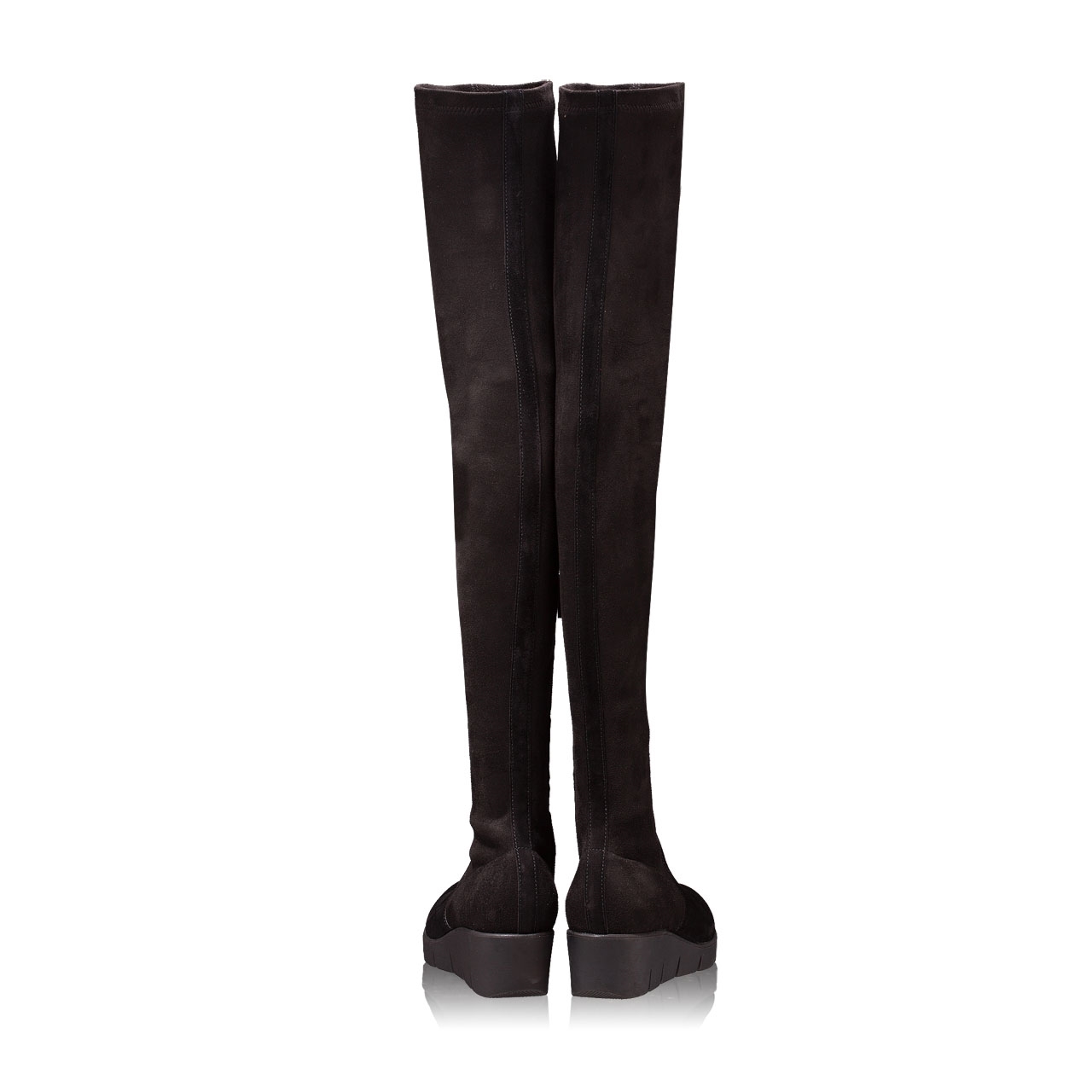Cizme dama peste genunchi, din piele intoarsa stretch, cu talpa ortopedica.Inchiderea se face cu fermoar lateral.