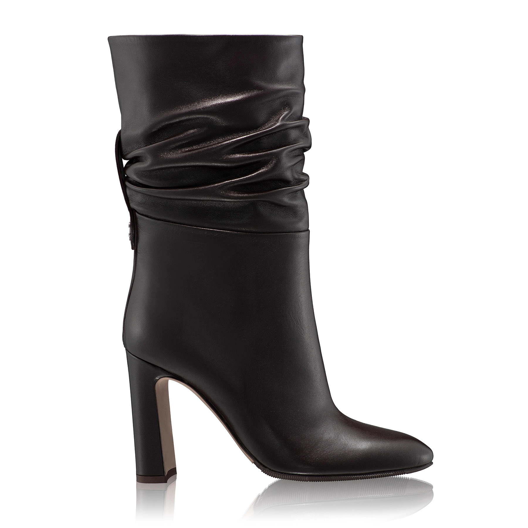 Cizme dama din piele naturală, accesorizate cu monograma Anna Cori.Înălțimea tocului este de 95 mm.În interior sunt căptușite cu piele naturală.