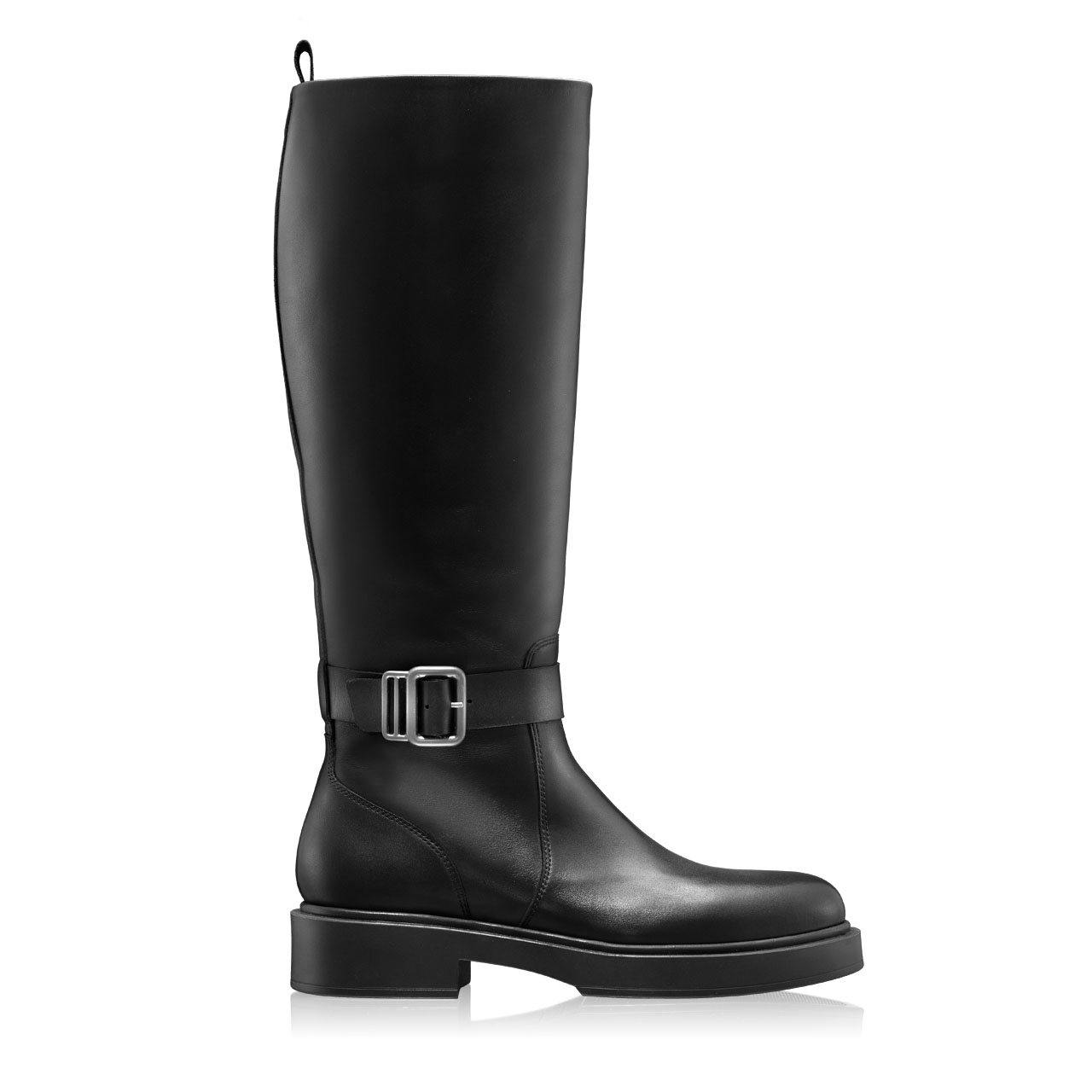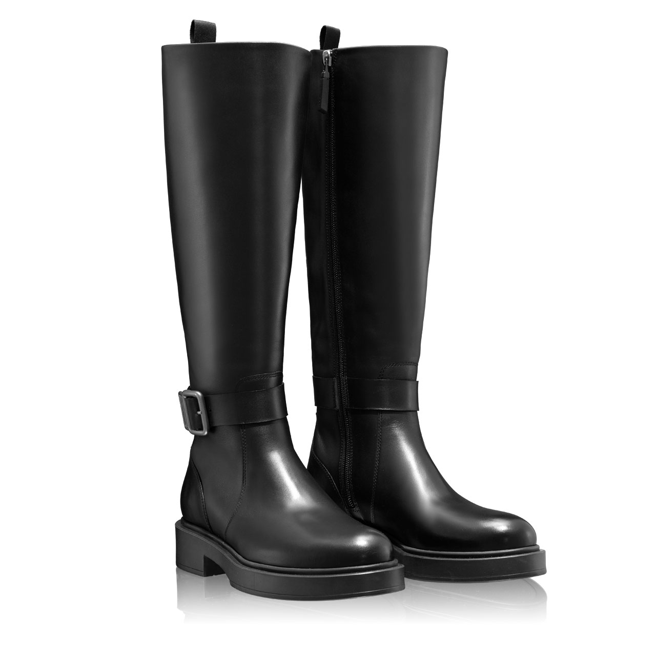 Cizme femei din piele naturală de vițel, prevăzute cu cataramă laterală. Sunt căptușite cu piele naturală și se închid cu fermoar lateral.