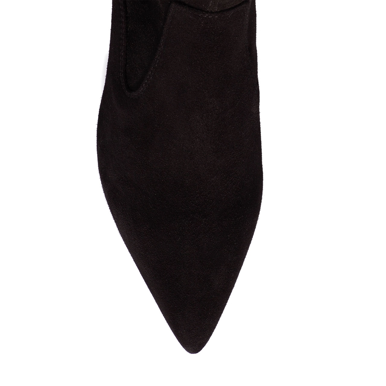 Cizme dama din piele intoarsa si material stretch.Inchiderea se face cu fermoar lateral.