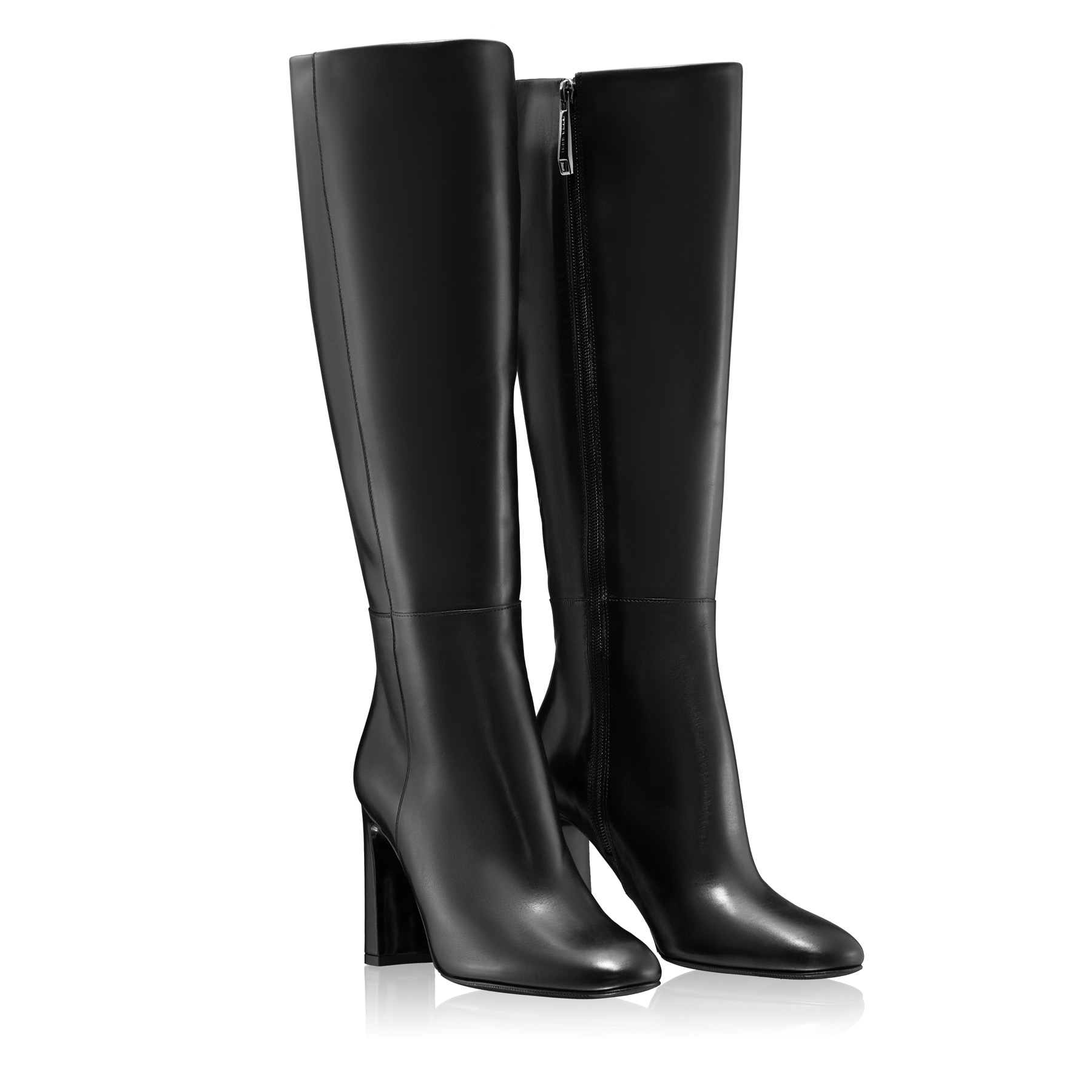 Cizme dama din piele naturală, prevăzute cu fermoar lateral.Înălțimea tocului este de 95 mm și în interior sunt căptușite cu blană.