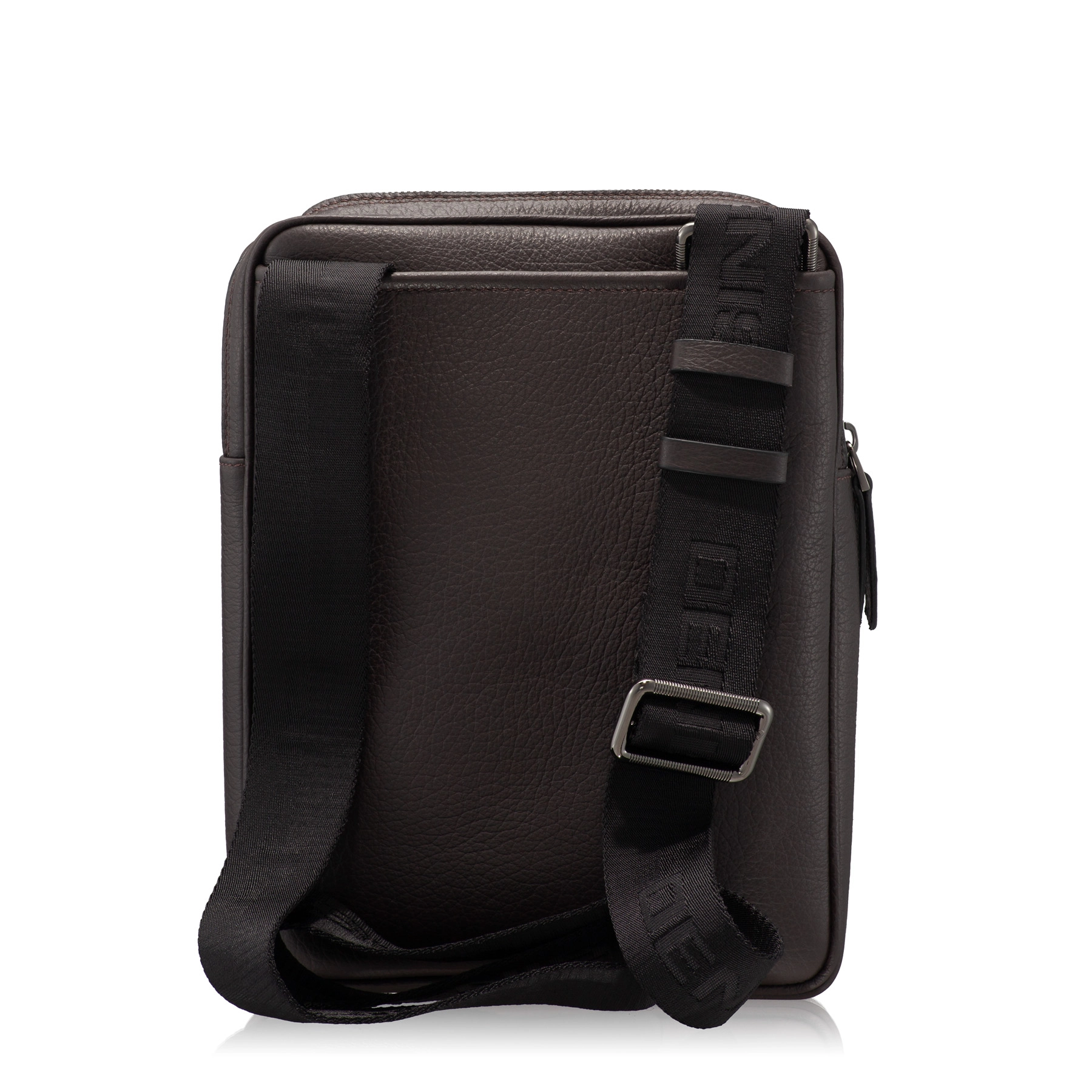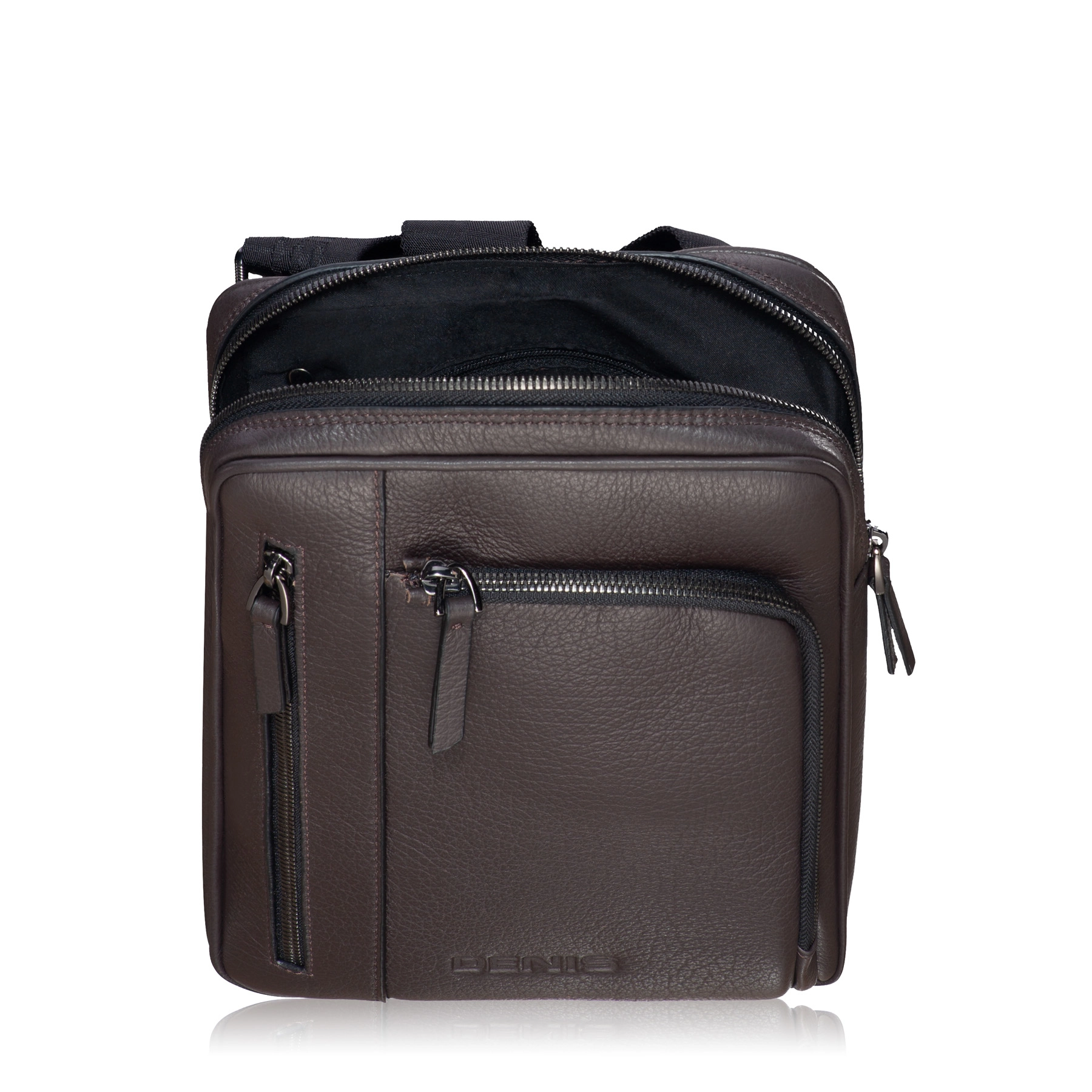 La interior, este prevazuta cu un compartiment si un buzunar cu fermoar aplicat.La exterior are un buzunar cu fermoar.Bareta de umar este ajustabila, iar inchiderea se face cu fermoar.