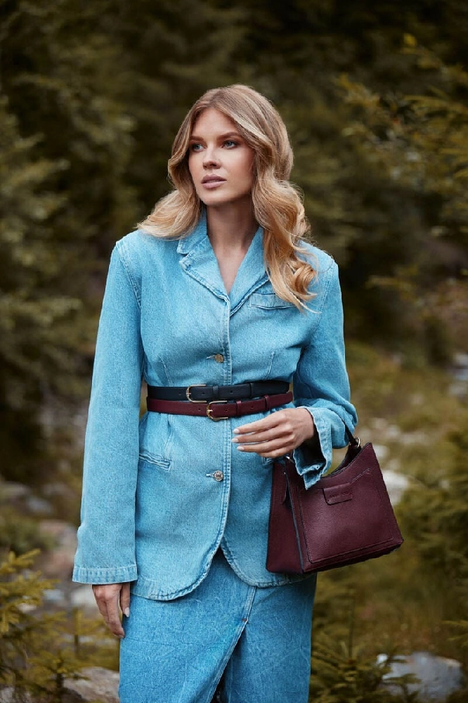 Pentru zilele în care vrei să te simți liberă, dar pusă la punct, pornește de la o bază simplă formată din denim. O ținută full denim îți lasă spațiu să adaugi un detaliu cu personalitate. O geantă bordo din piele naturală aduce structură și acel twist chic care schimbă discret dinamica întregii ținute.