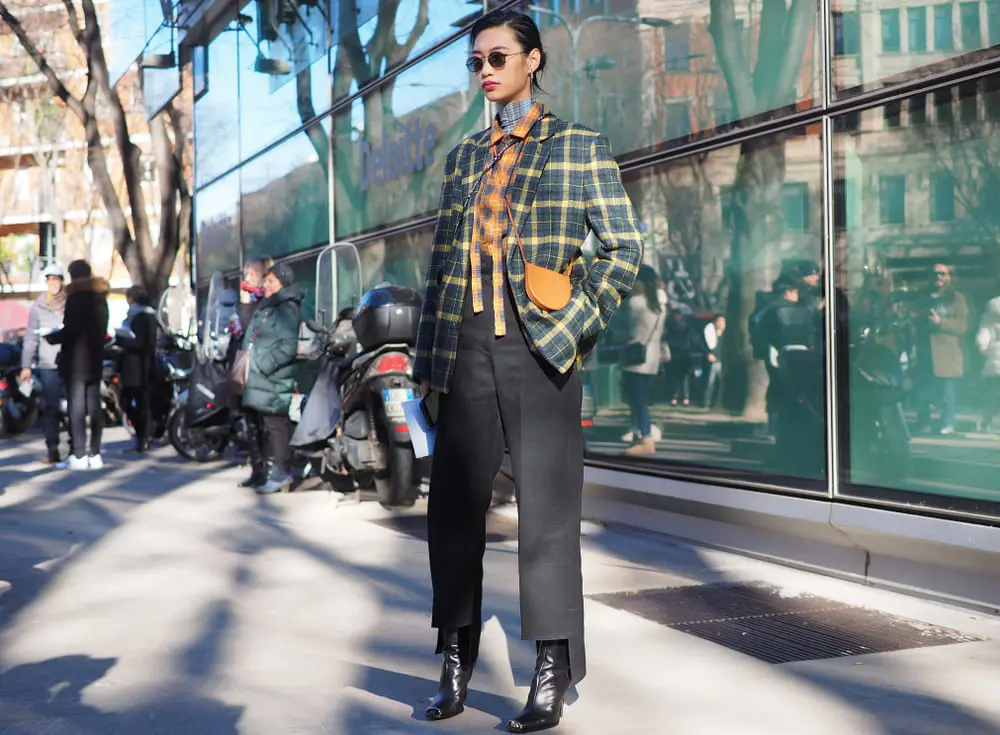Vrei să obții un look glam, parcă desprins din revistele de modă de sezon? Atunci îți sugerăm să optezi pentru un top elegant cu volane, o fustă plisată, un palton în carouri și o pereche de cizme până la genunchi în nuanțe vii, excentrice. Știi deja , așa că îți sugerăm să te orientezi spre o geantă mică, de mână, în tonuri metalice, pentru un plus de glamour. O pereche de mănuși din piele se vor potrivi minunat acestui look.