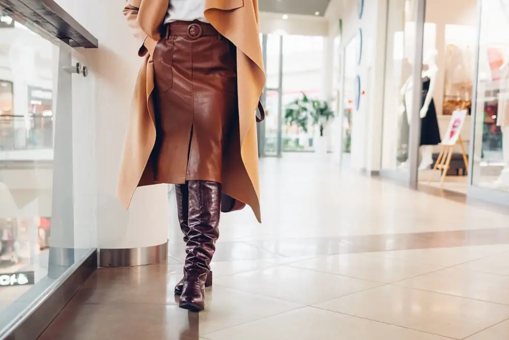 5. Ținută glam cu cizme: fustă cu cizme lungi stridente