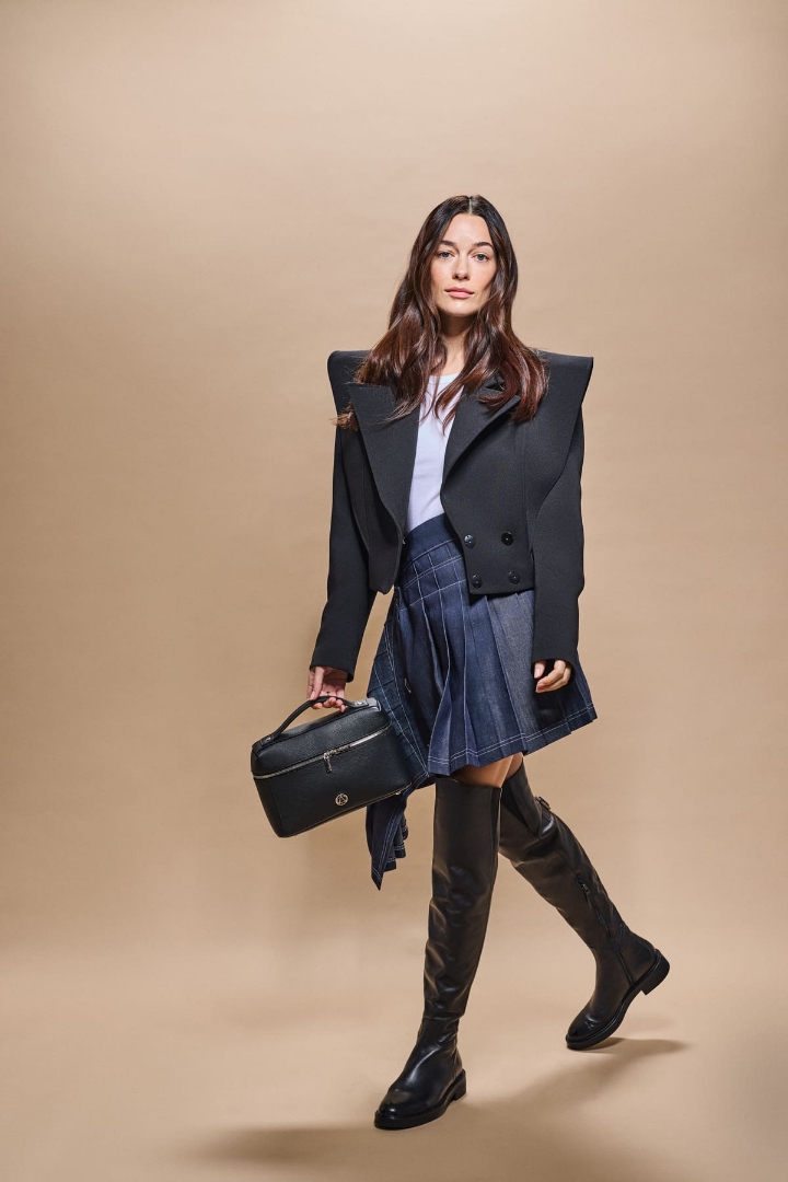 Accesoriile joacă un rol semnificativ în completarea ținutei. Gențile, eșarfele sau bijuteriile pot aduce un plus de stil și personalitate oricărei ținute. De exemplu, o geantă mare, de culoare neutră, poate echilibra vizual un outfit compus din cizme lungi și o fustă mini.