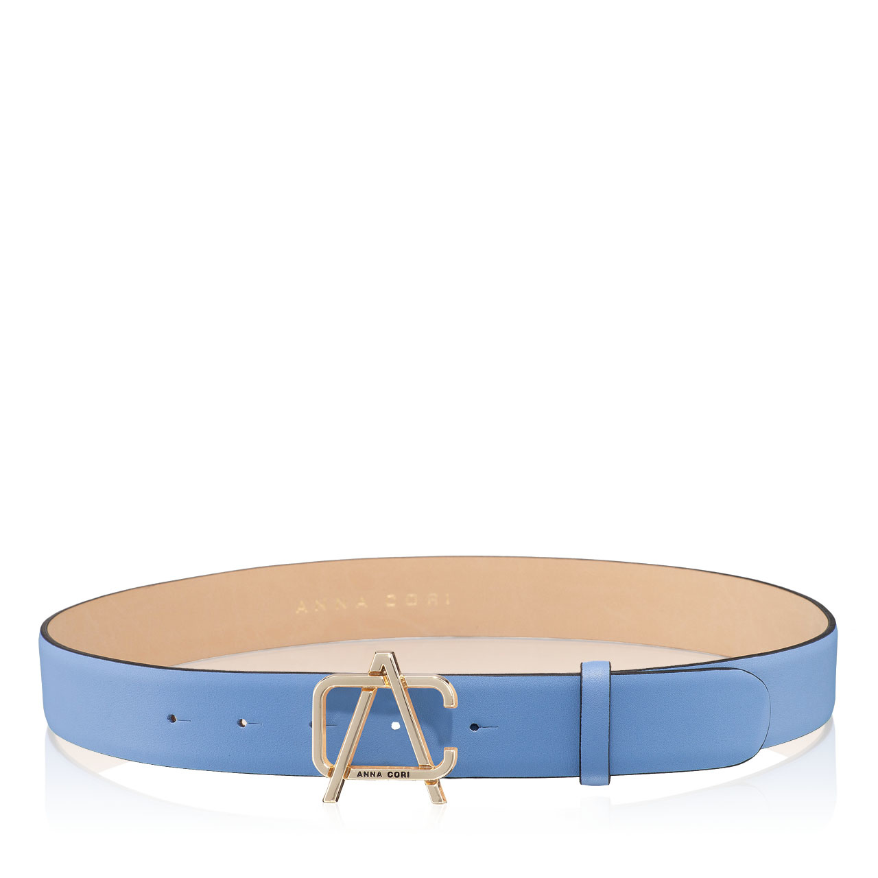 Curea dama din piele naturala accesorizata cu monograma Anna Cori.Latimea curelei este de 3,3cm.Accesorii aurii.
