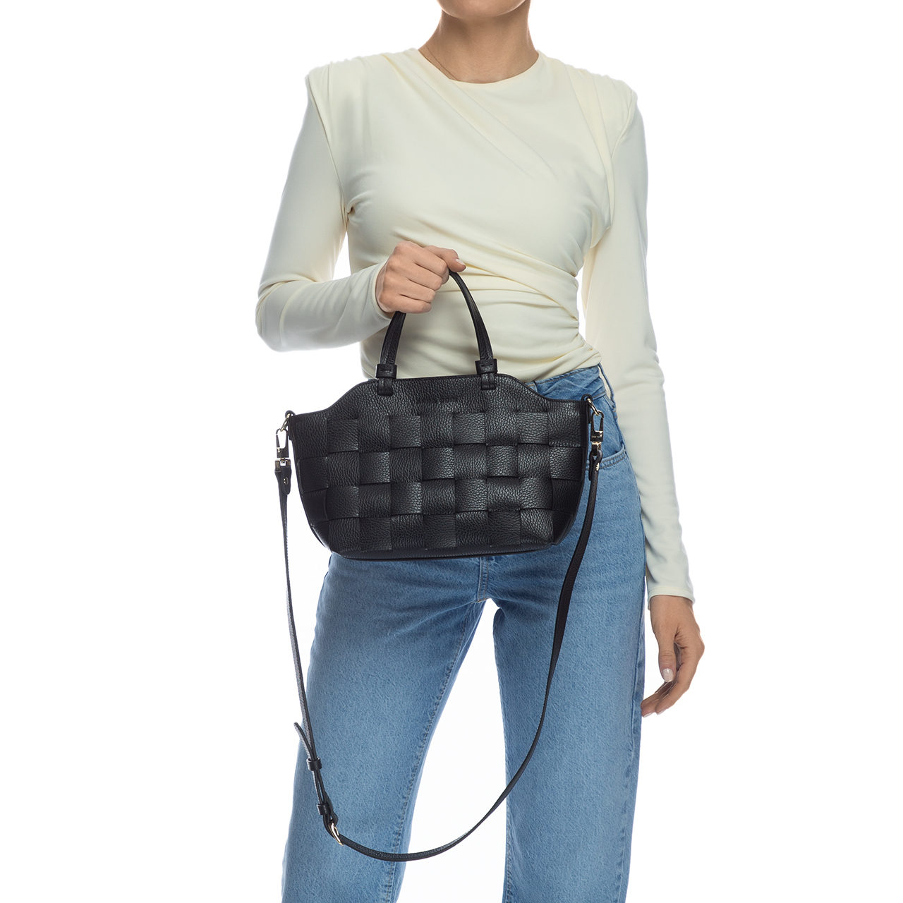 Geanta dama de mana din piele naturala cu accesorii personalizate.Este prevazuta cu un singur compartiment si un buzunar detasabil cu fermoar. Bareta de umar este detasabila si ajustabila, iar inchiderea se face cu fermoar.