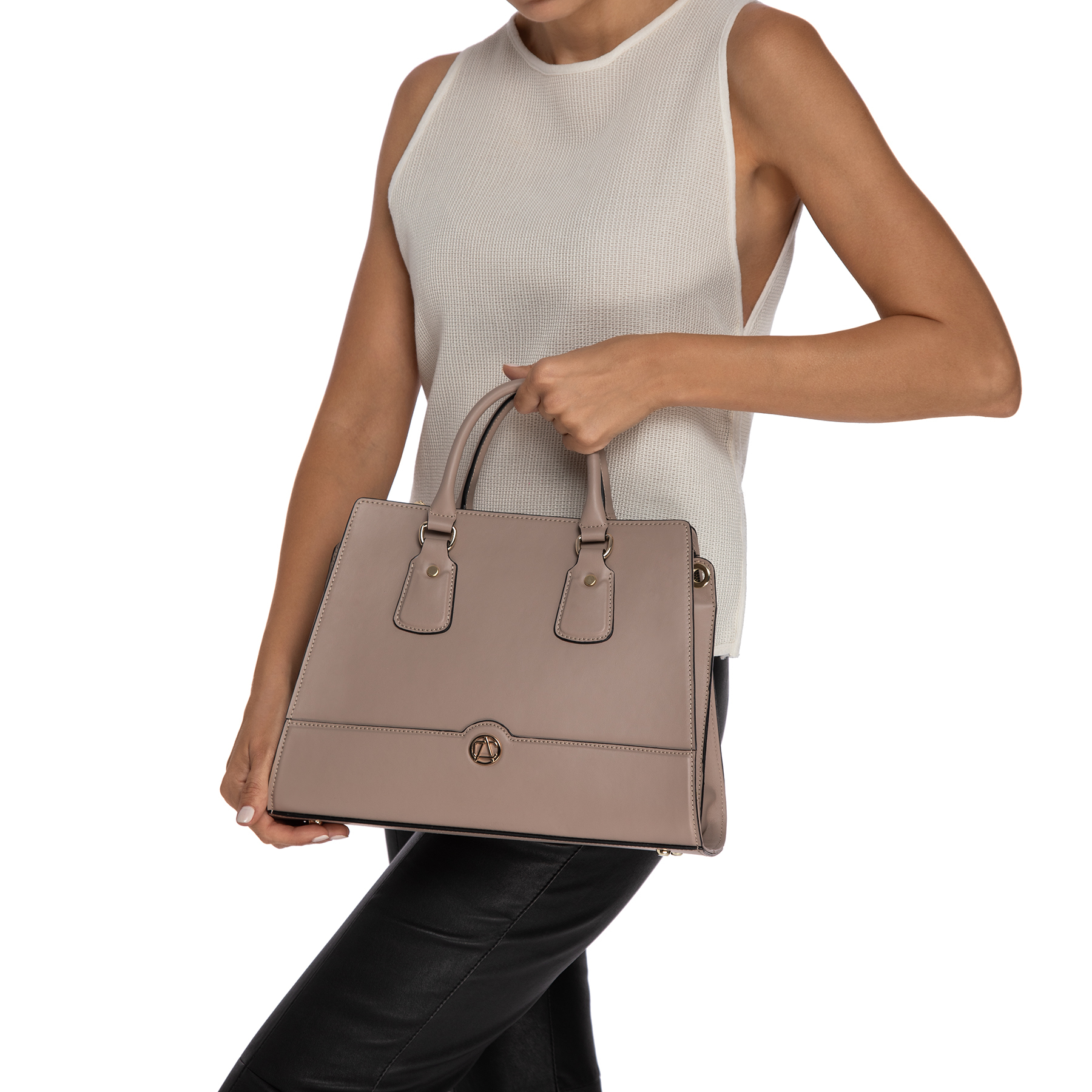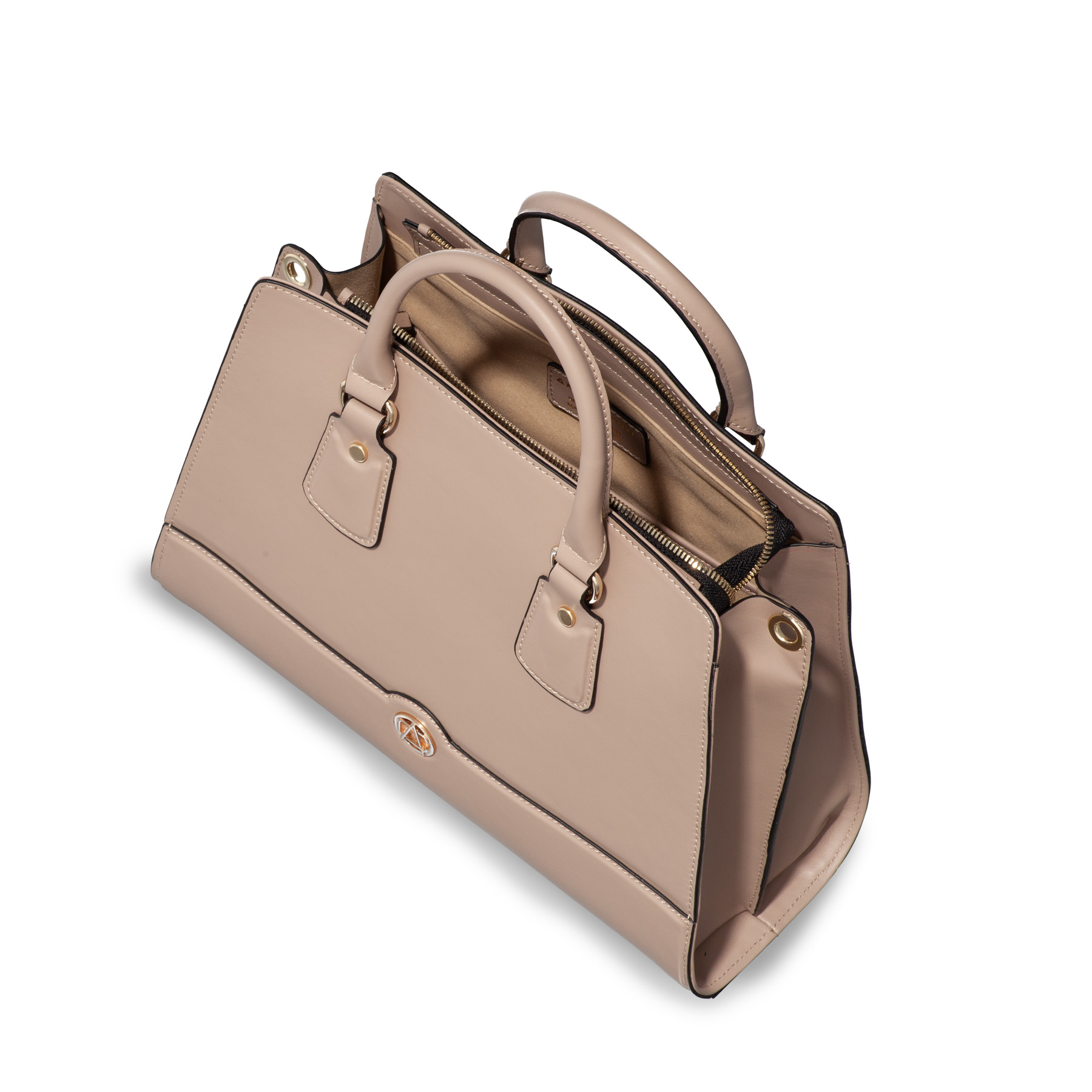 Spațioasă și rafinată, geanta #DAYA este o geantă de mână într-o formă clasică, are o închidere sigură cu fermoar și un mâner din piele naturală.
