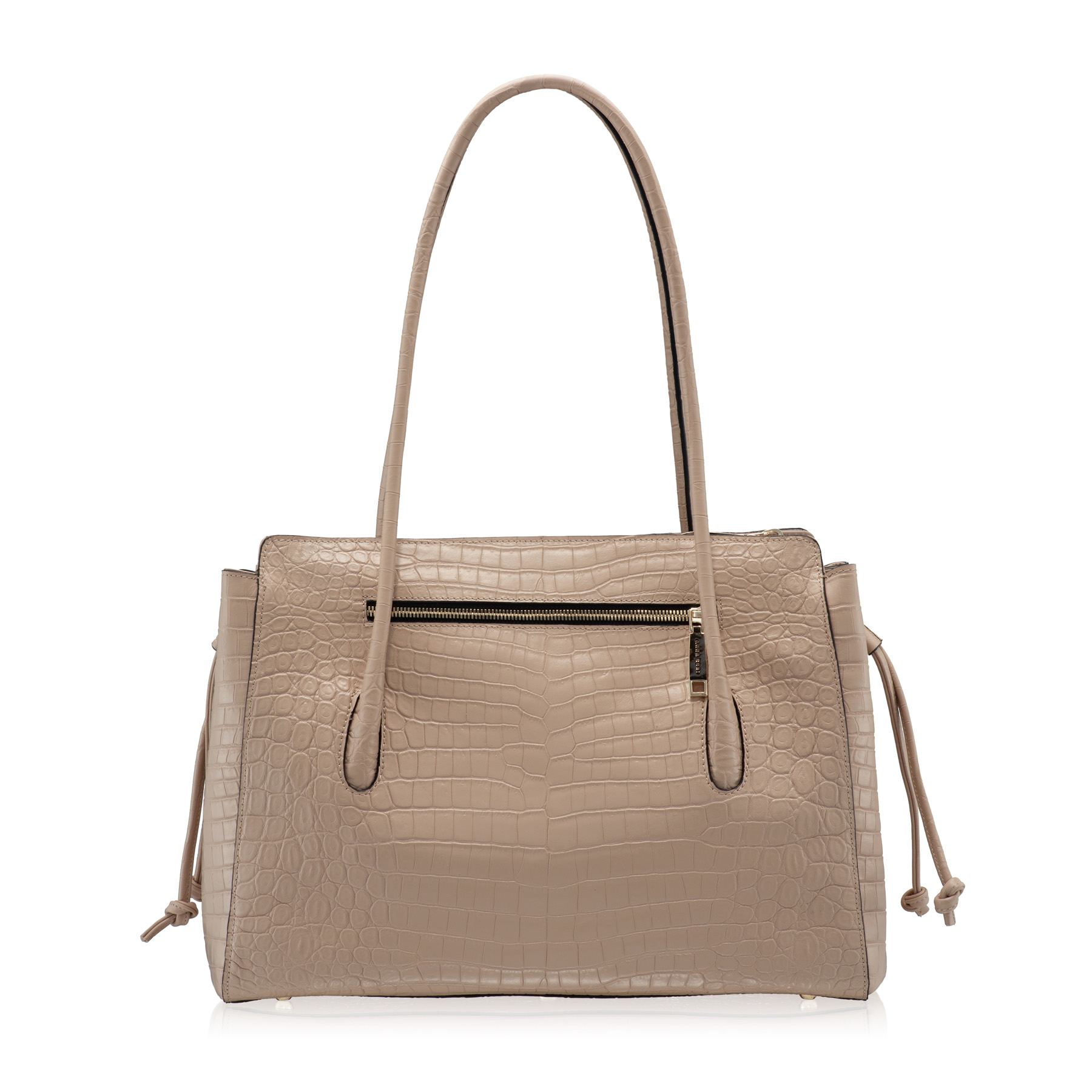 Geanta #ELENI este o geantă compactă, dar în același timp suficient de mare pentru a-ți purta toate lucrurile esențiale cu tine, având un compartiment foarte încăpător și 2 buzunare. Este confectionată din piele naturală, are un accesoriu nou din metal auriu și două barete de umăr sunt din piele naturală.