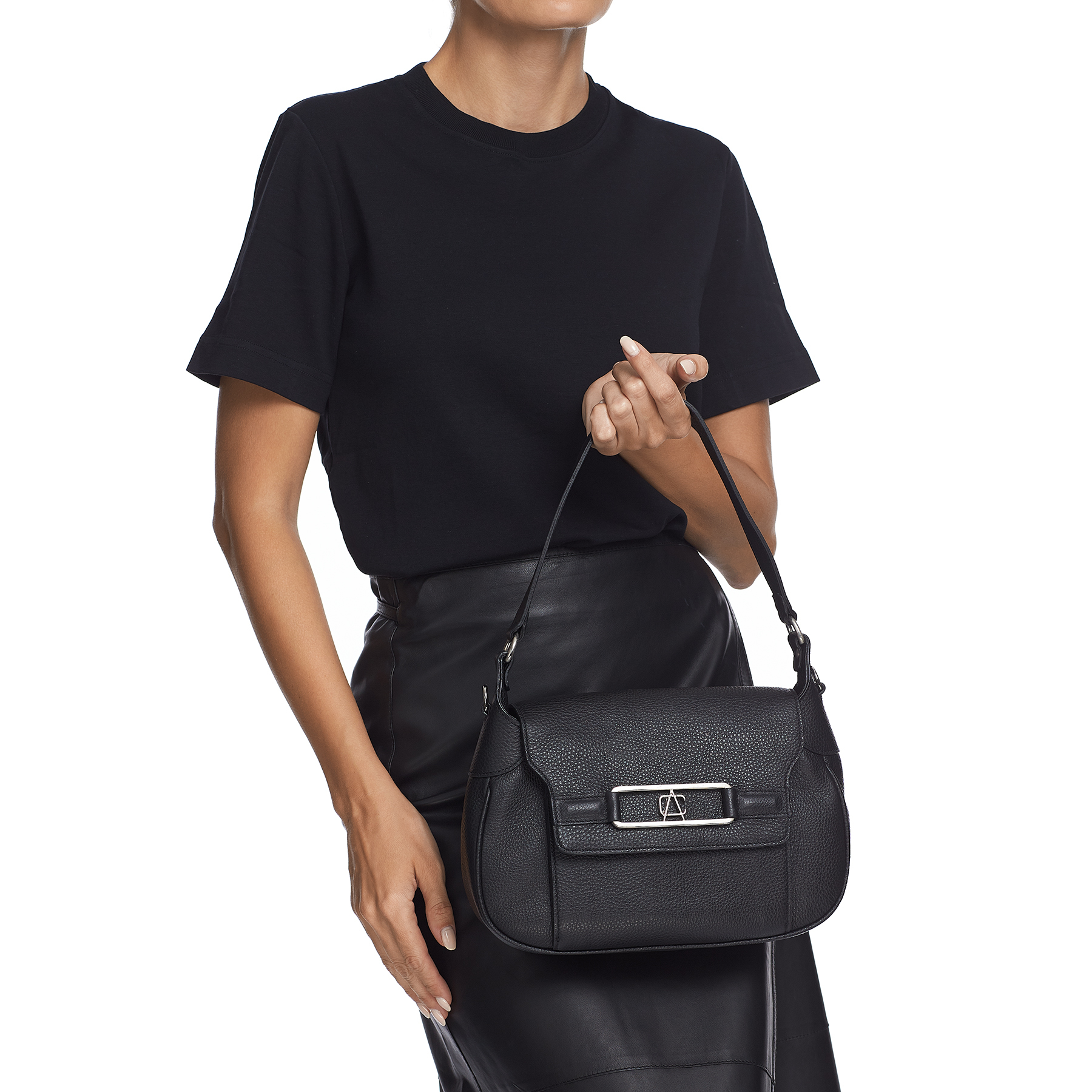 Geanta de mana, ENISA 02, realizată din piele naturală cu un design modern și accesorizată cu monograma ANNA CORI.