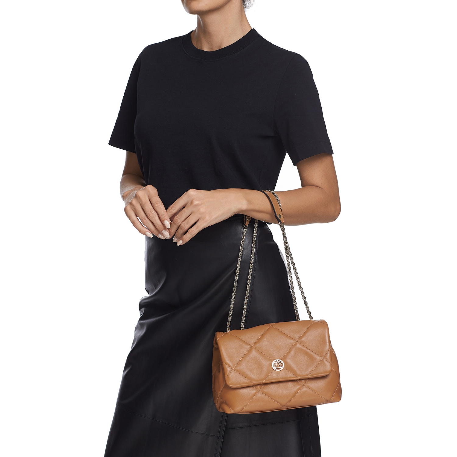 Geanta de umar din piele naturala, matlasata si personalizata cu monograma ANNA CORI.Este prevazuta cu doua compartimente,un buzunar cu fermoar,iar inchiderea se face cu magnet.