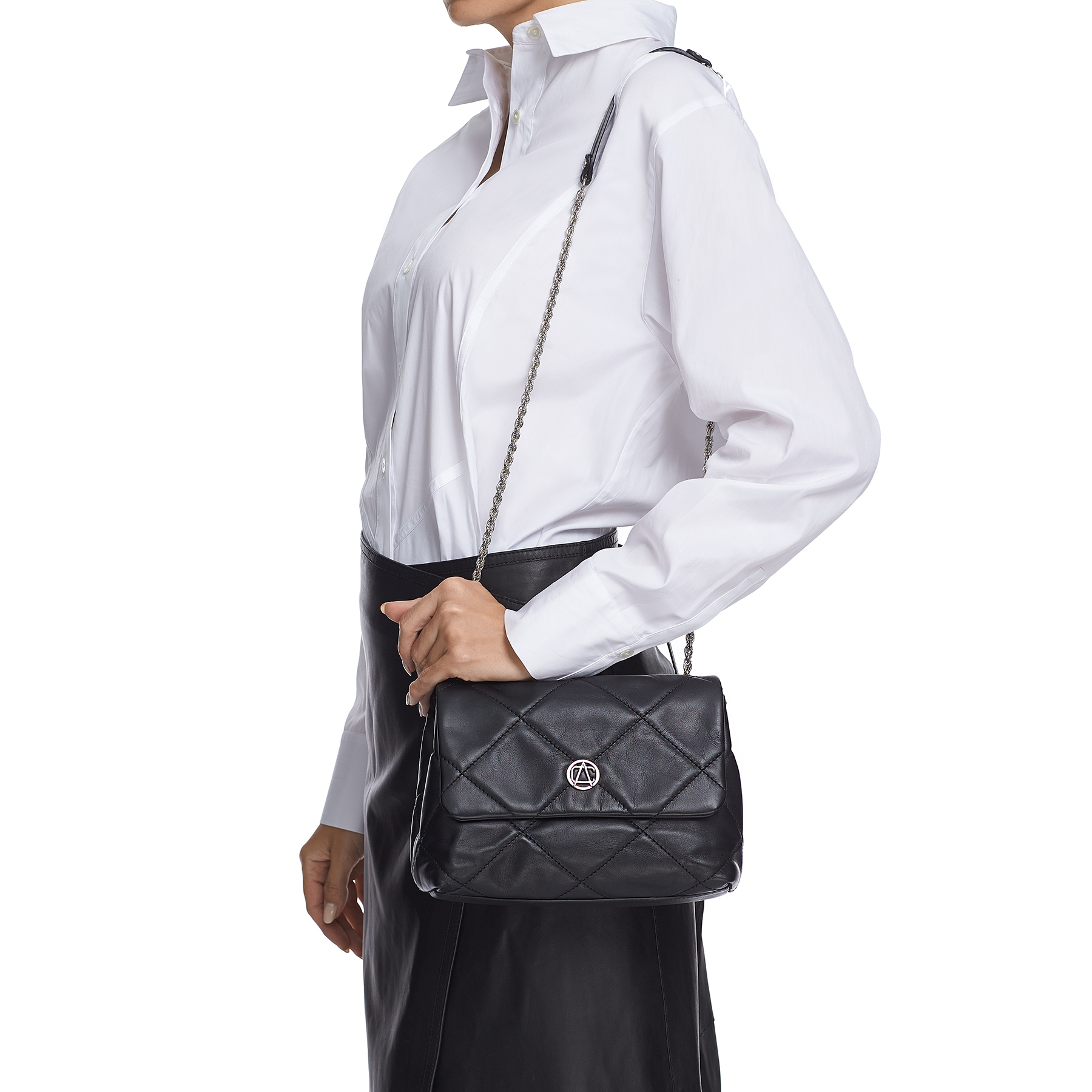 Geanta de umar din piele naturala, matlasata si personalizata cu monograma ANNA CORI.Este prevazuta cu doua compartimente,un buzunar cu fermoar,iar inchiderea se face cu magnet.